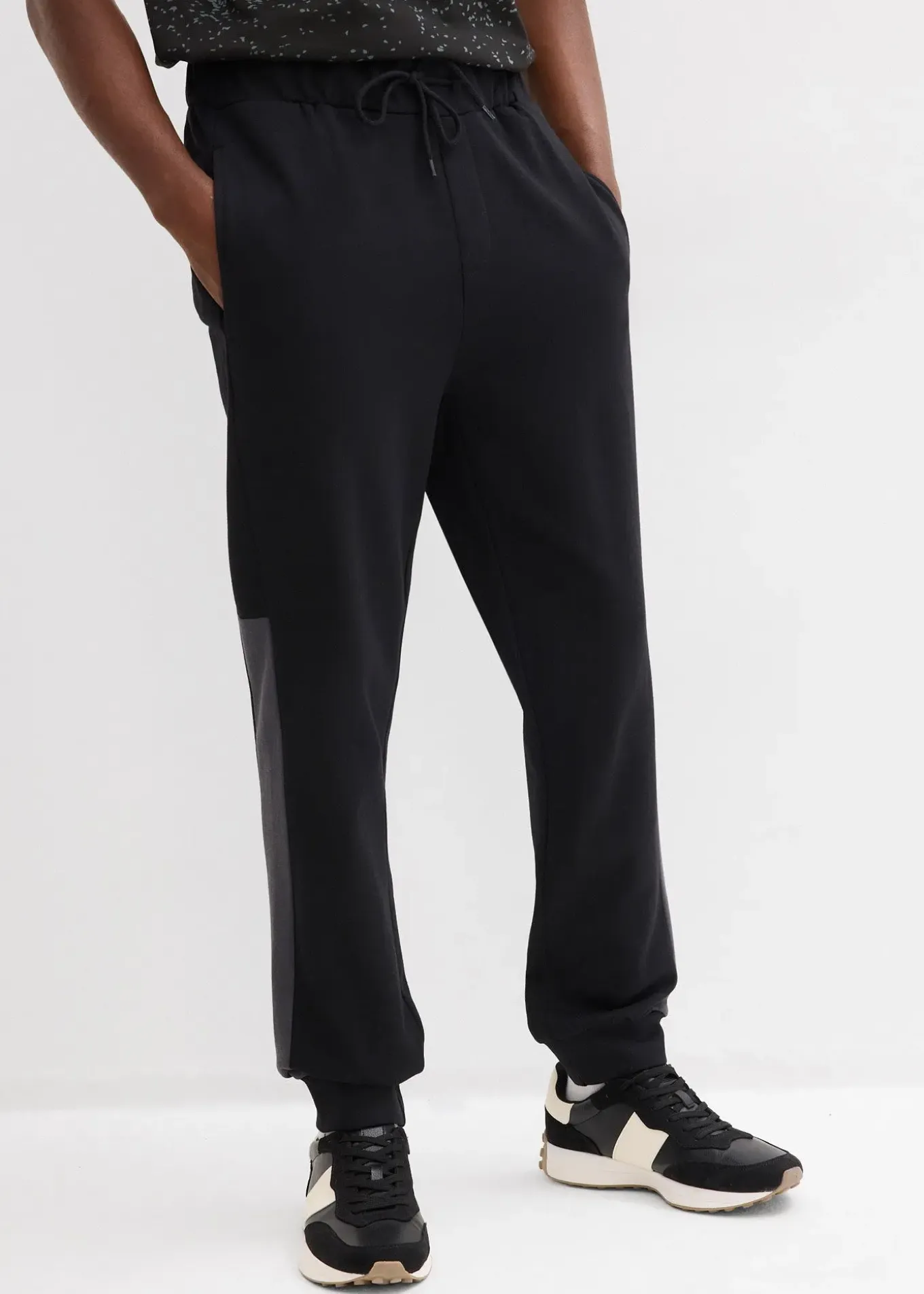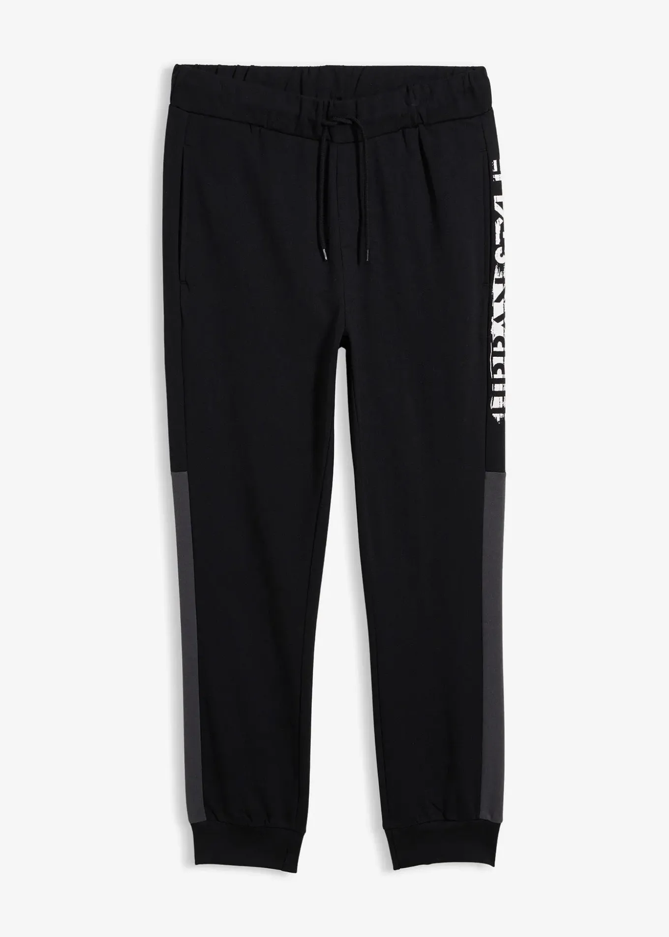 Pantalon de jogging moderne avec inscription et empiècement contrastant sur la jambe, intérieur gratté doux