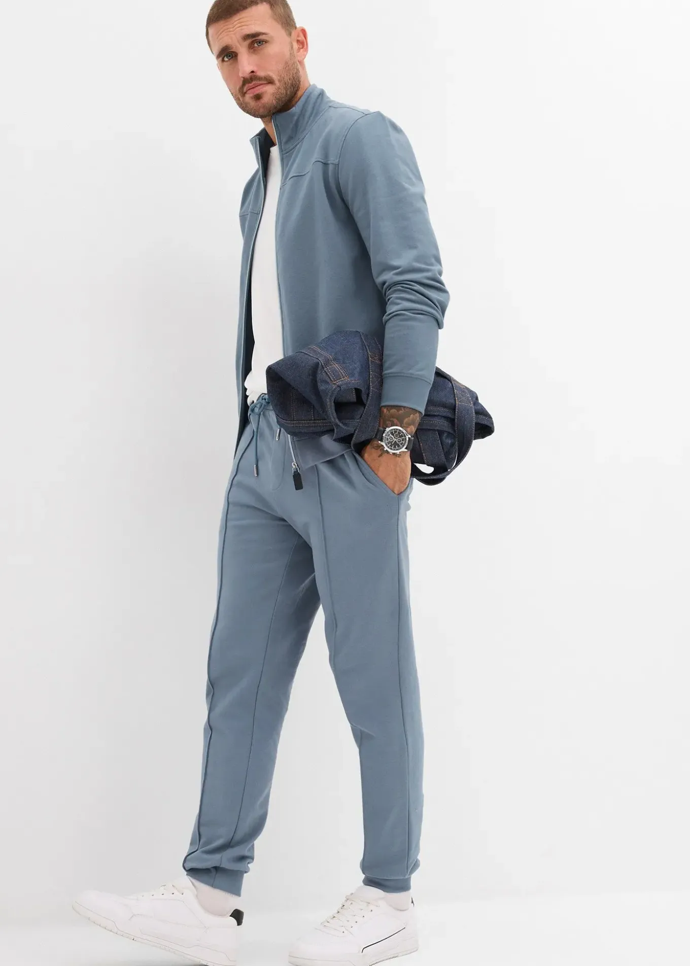 Pantalon de jogging élégant avec finitions bord-côtes et passepoil