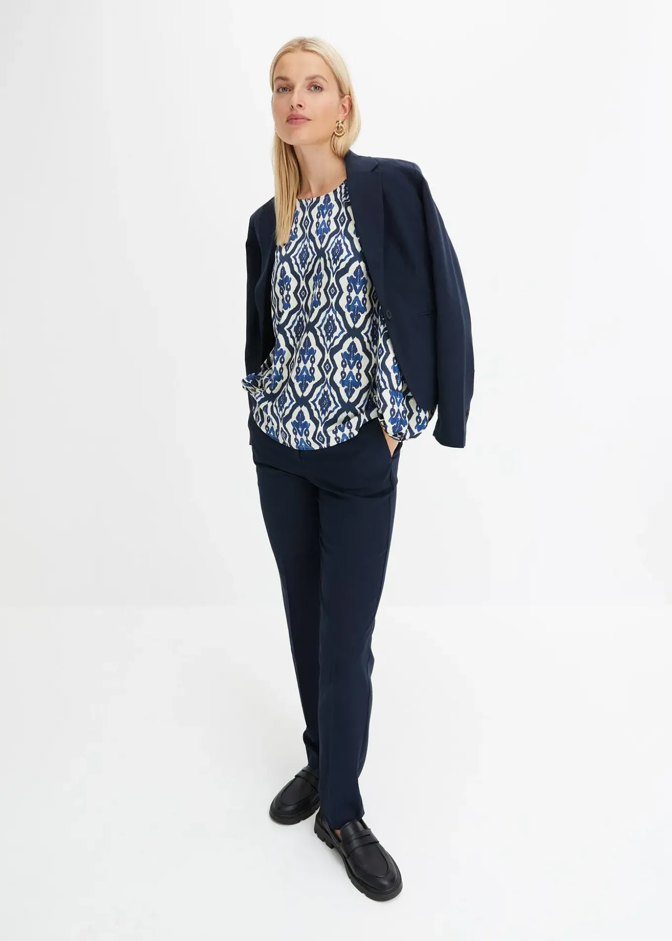 Magnifique pantalon style business avec poches latérales. Les plis repassés sur le devant et dans le dos lui donnent un look particulièrement élégant. Long. entrejambe env. 79,5 cm.