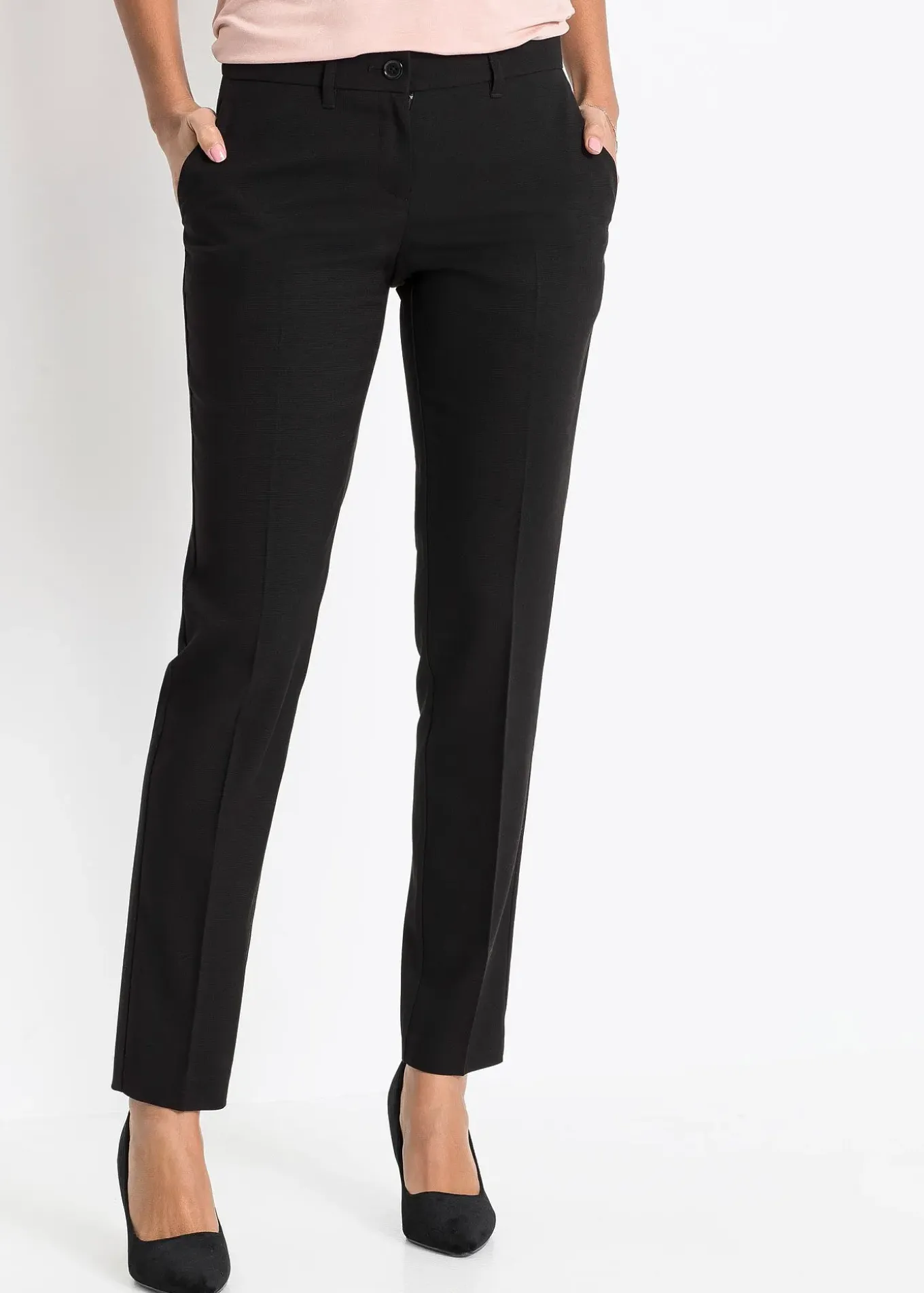 Magnifique pantalon style business avec poches latérales. Les plis repassés sur le devant et dans le dos lui donnent un look particulièrement élégant. Long. entrejambe env. 79,5 cm.