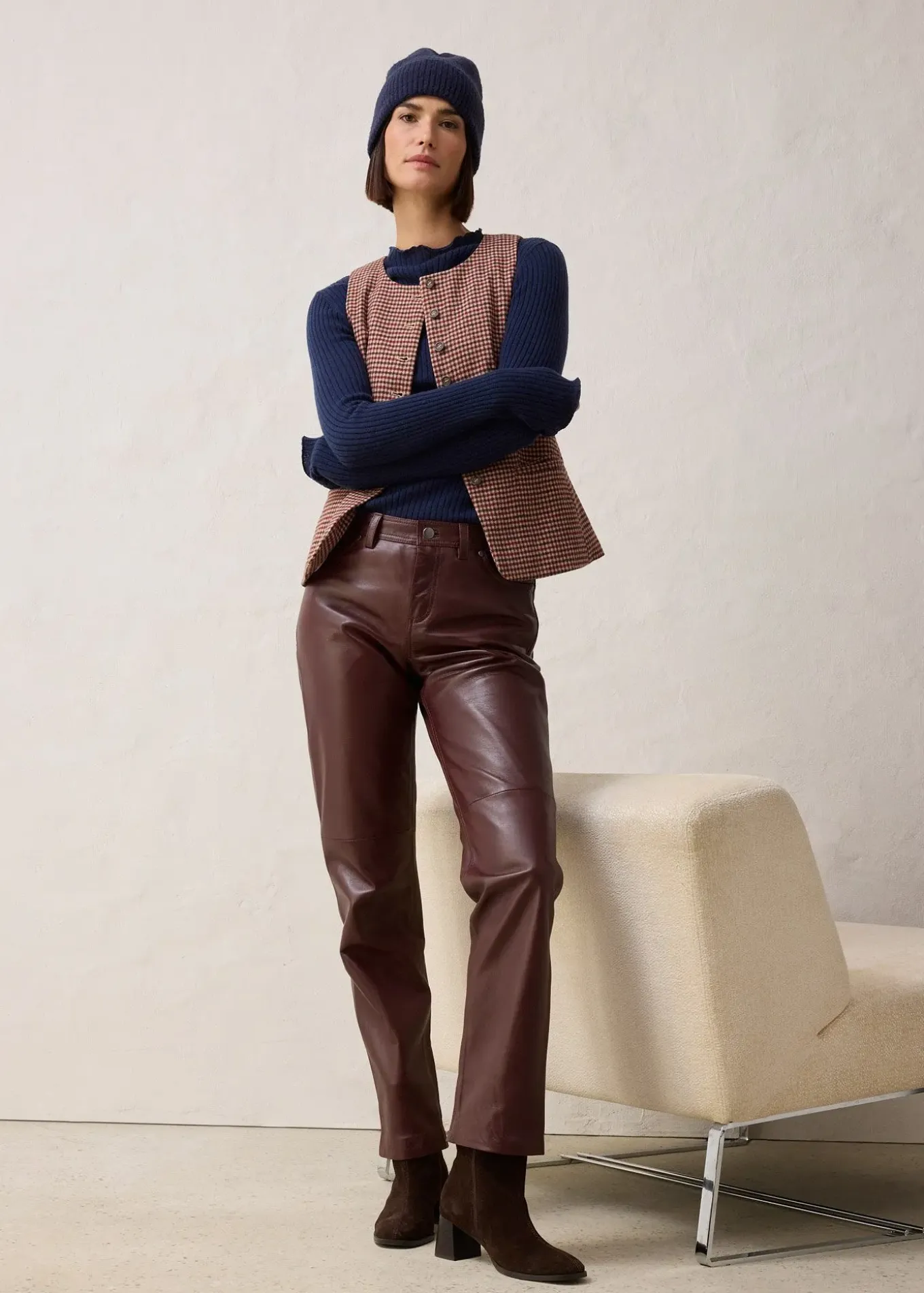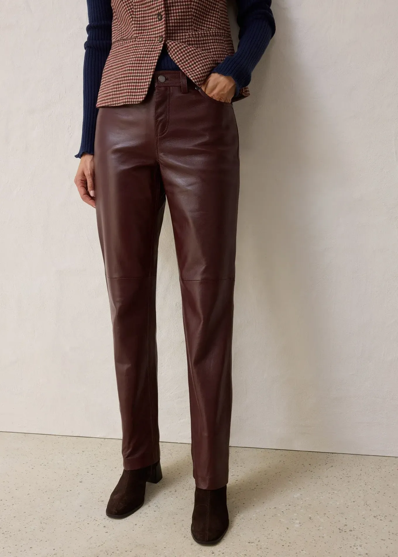 Pantalon droit 5 poches en cuir souple