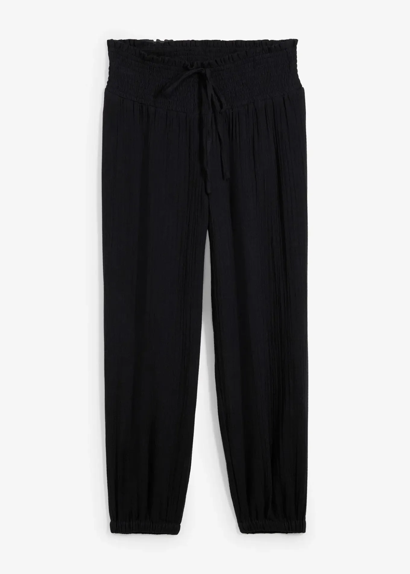 Pantalon confortable en gaze de coton à large ceinture élastiquée