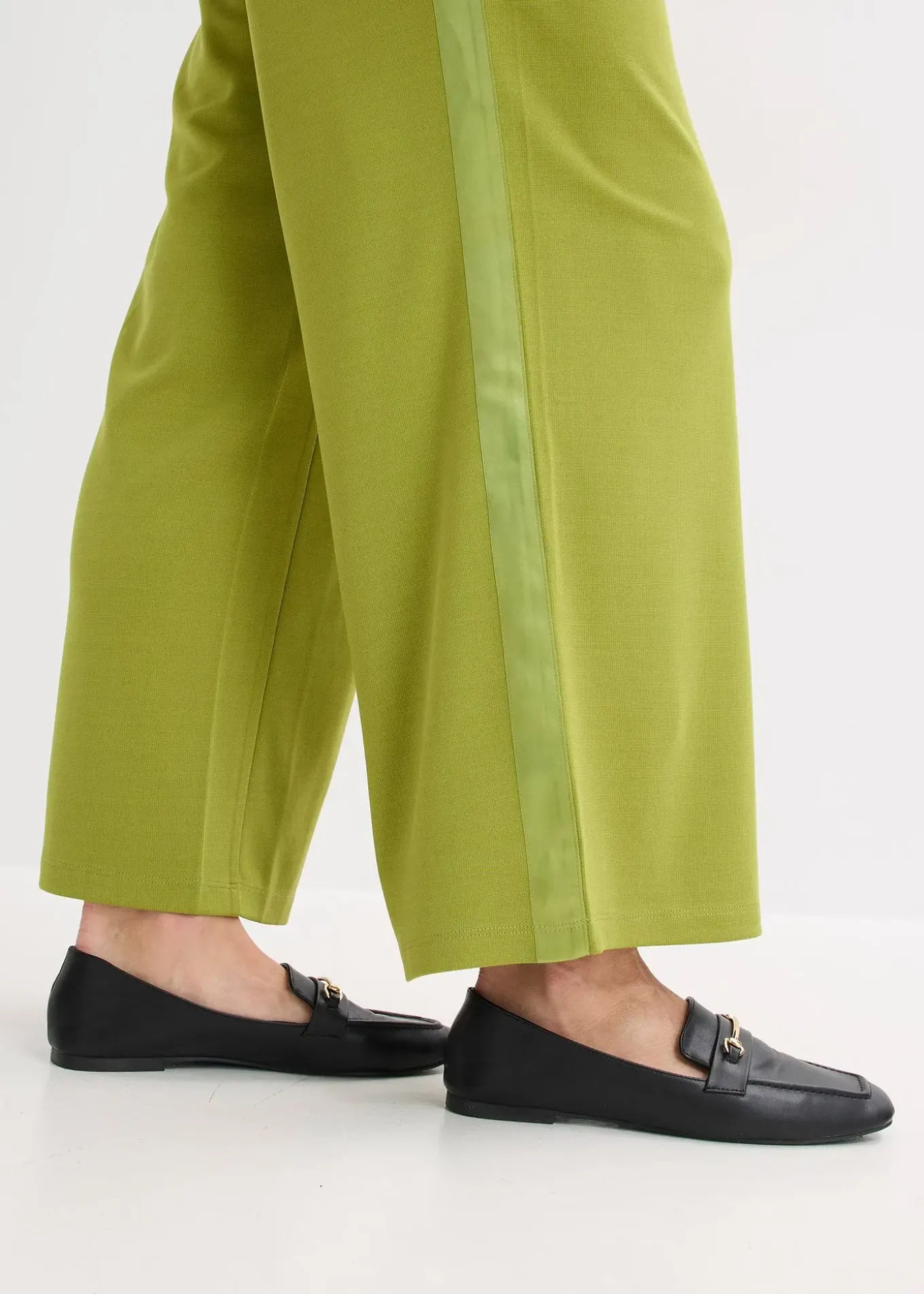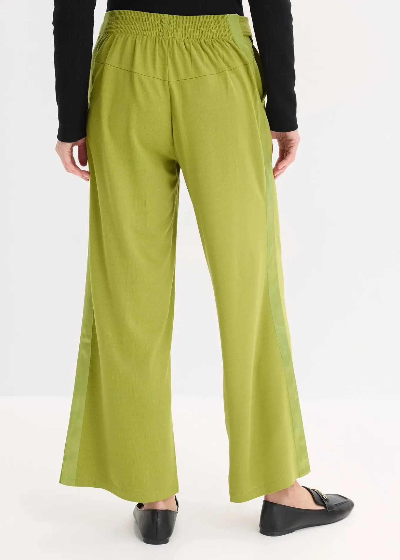 Pantalon large et élégant à pinces en Punto di Roma avec ruban de satin