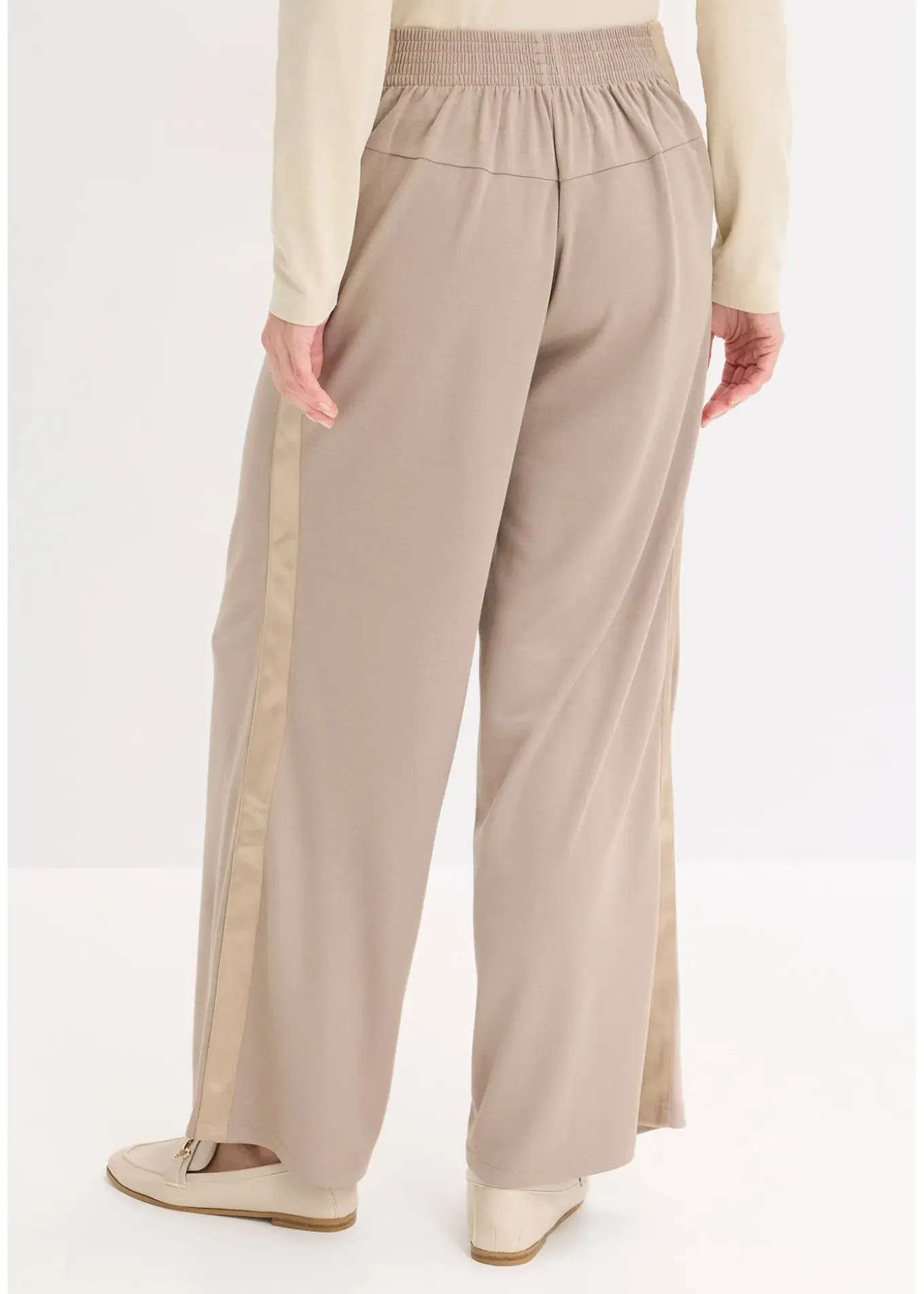 Pantalon large et élégant à pinces en Punto di Roma avec ruban de satin