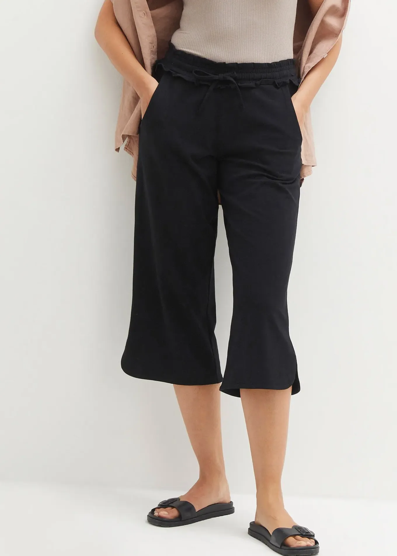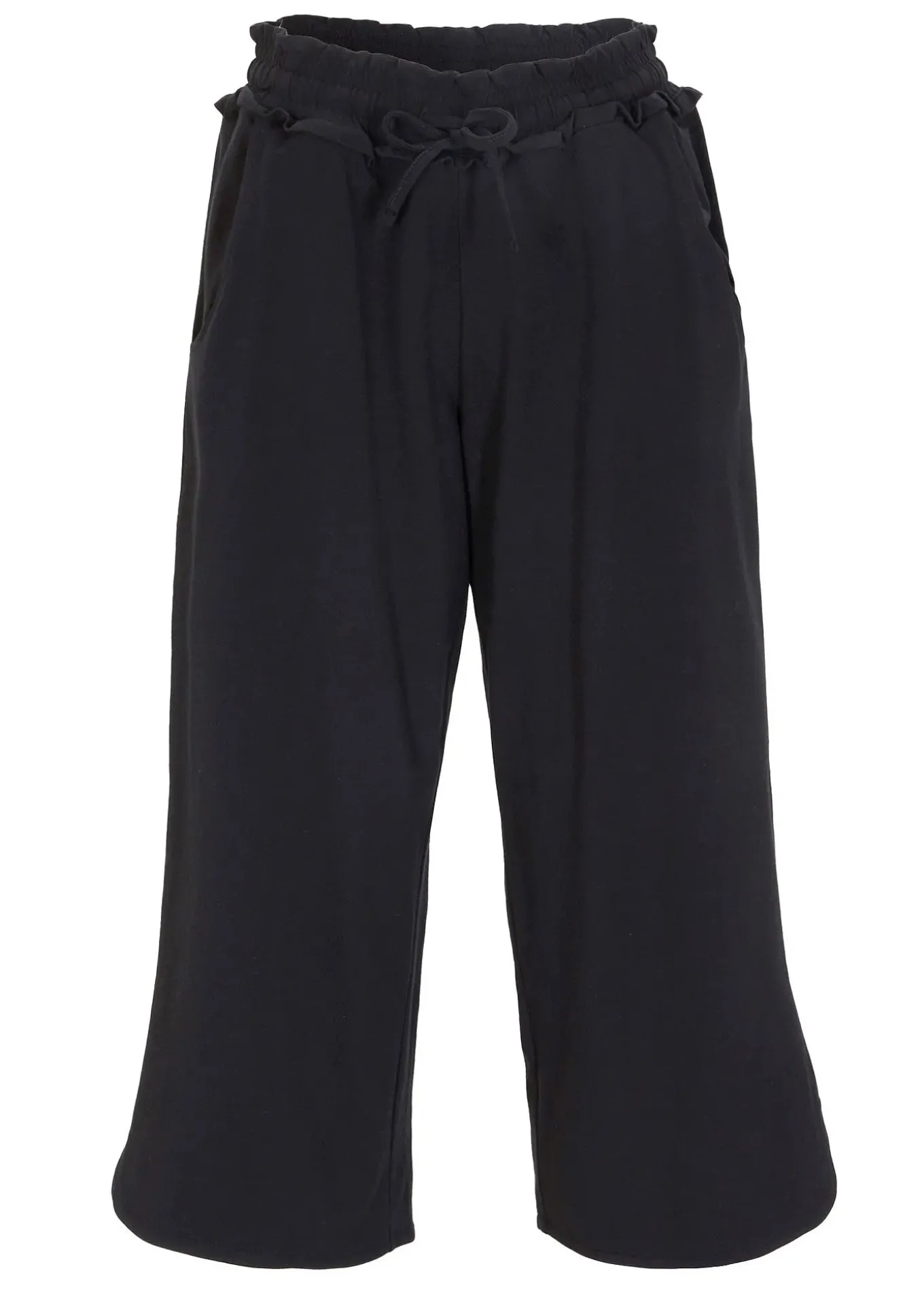 Modèle oversize confortable avec taille élastiquée et cordon, poches sur les côtés.