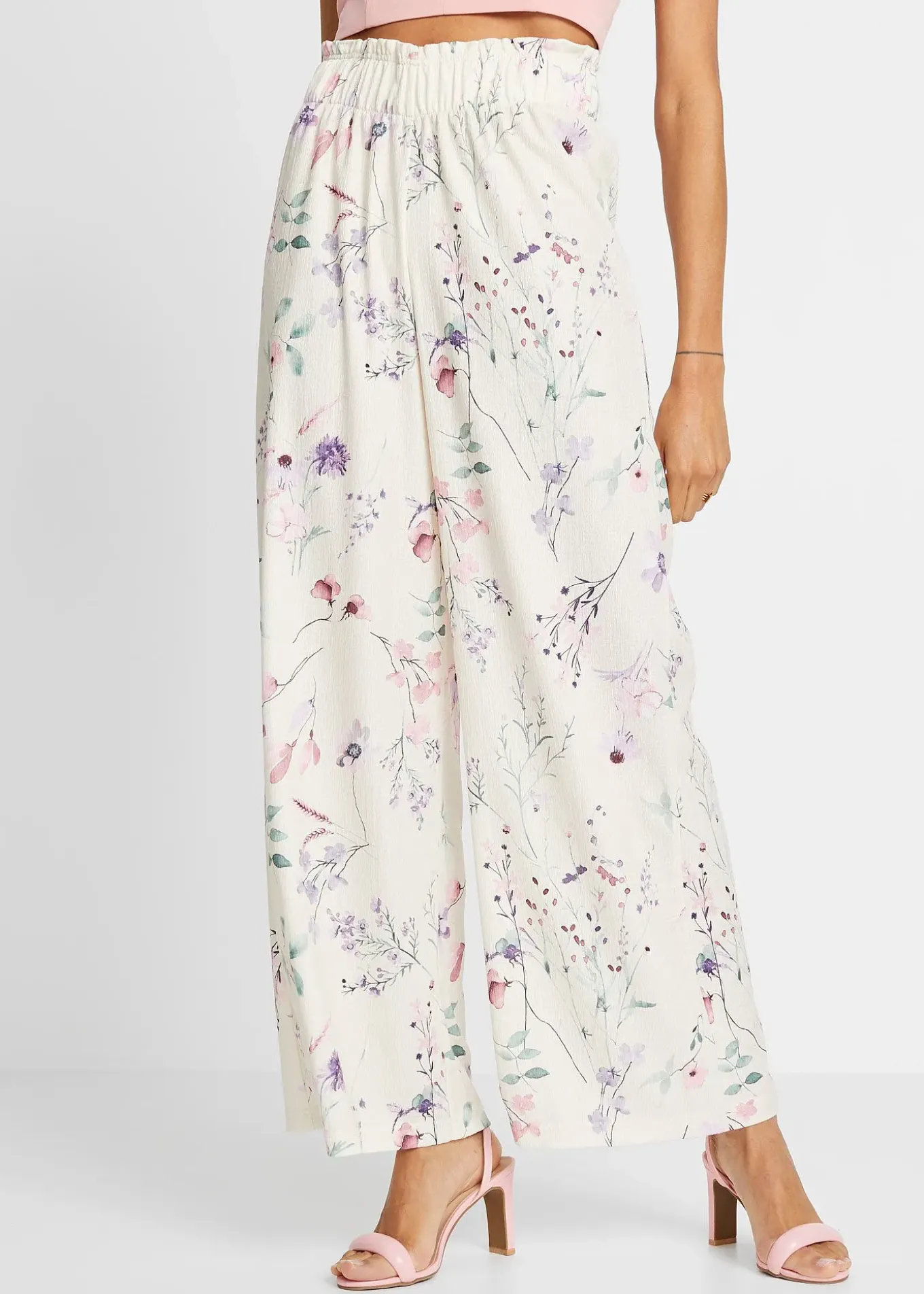 Pantalon plissé en crêpe avec imprimé floral