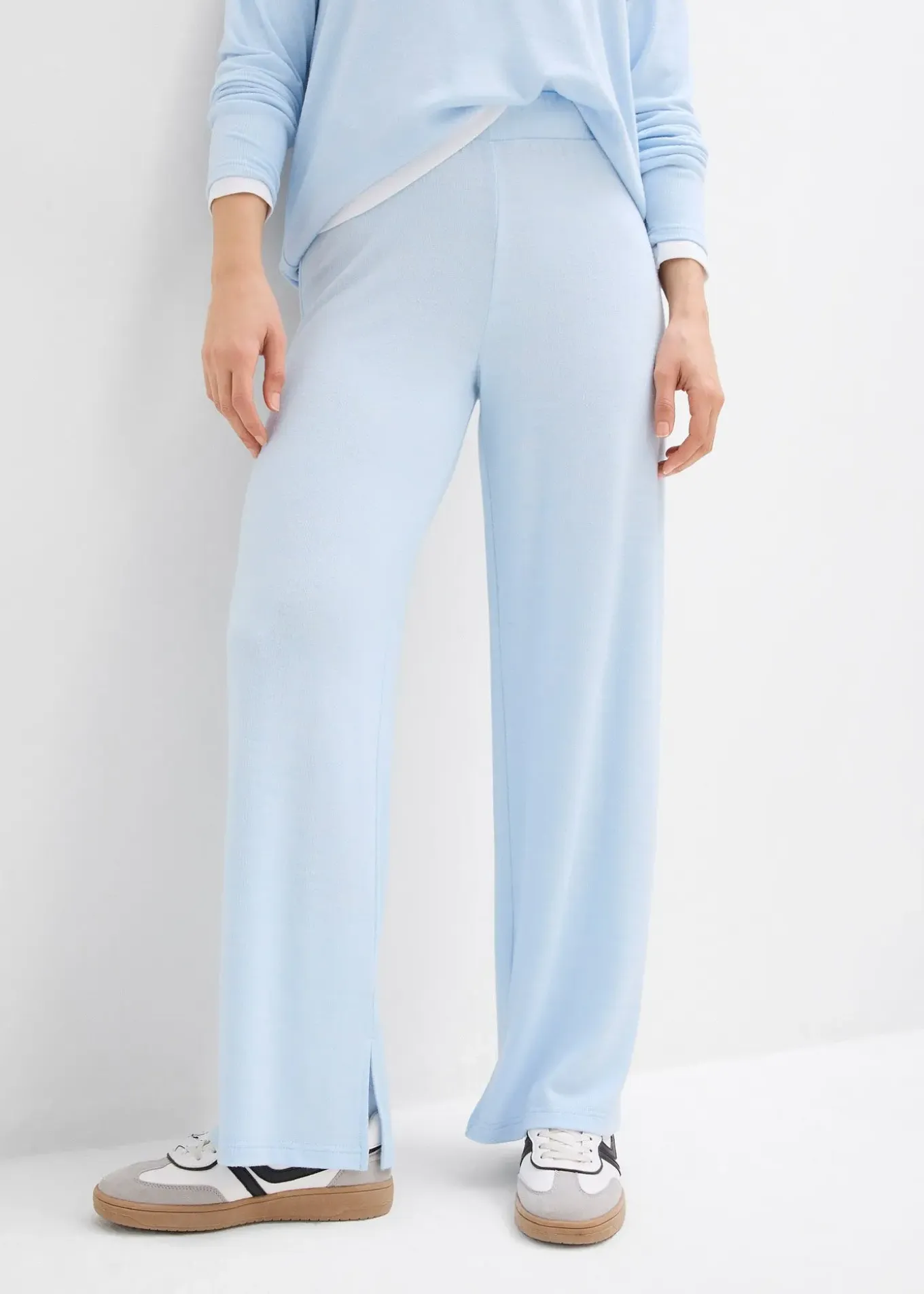 Pantalon palazzo effet maille à taille élastiquée et bas de jambes fendus à l’intérieur