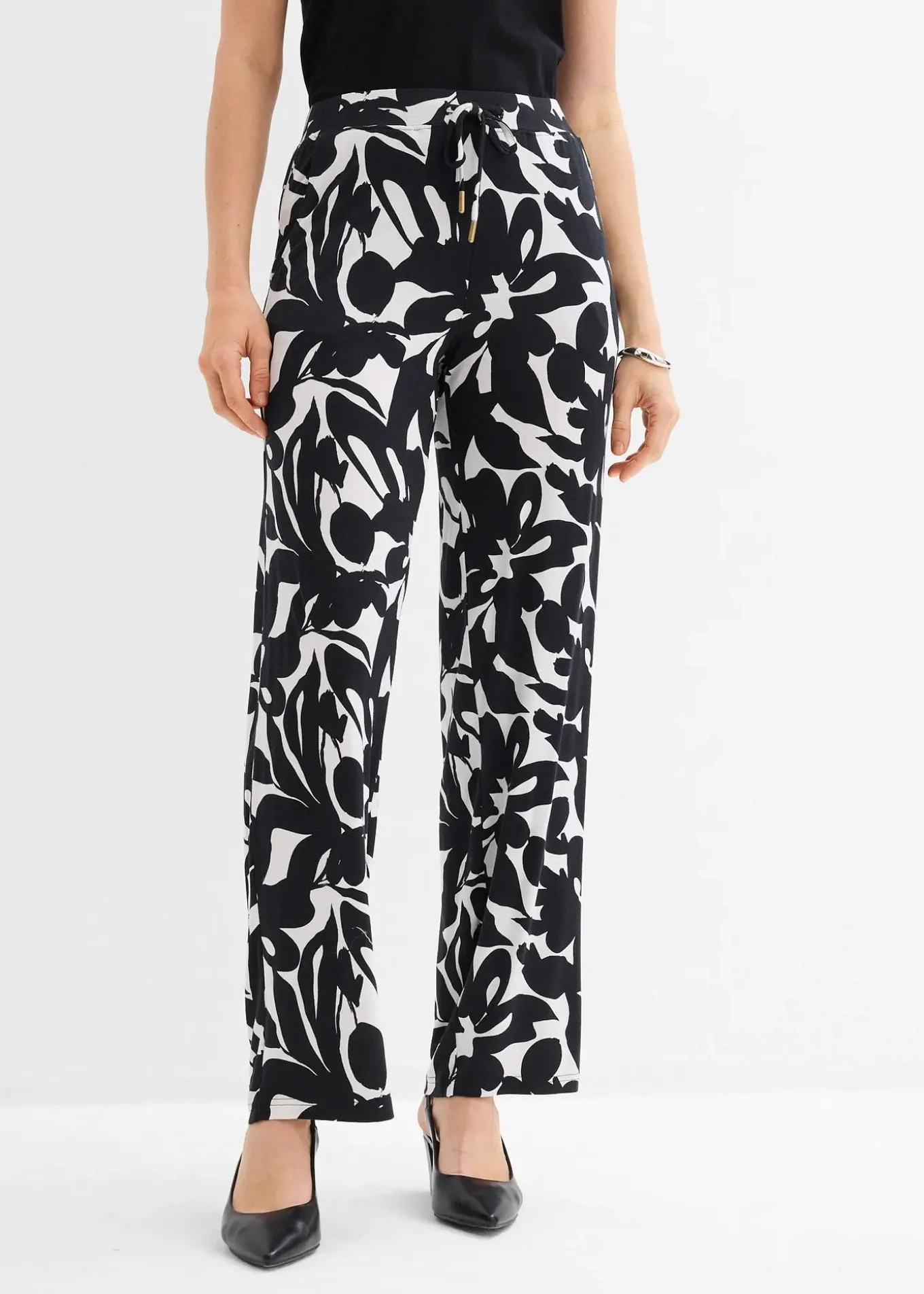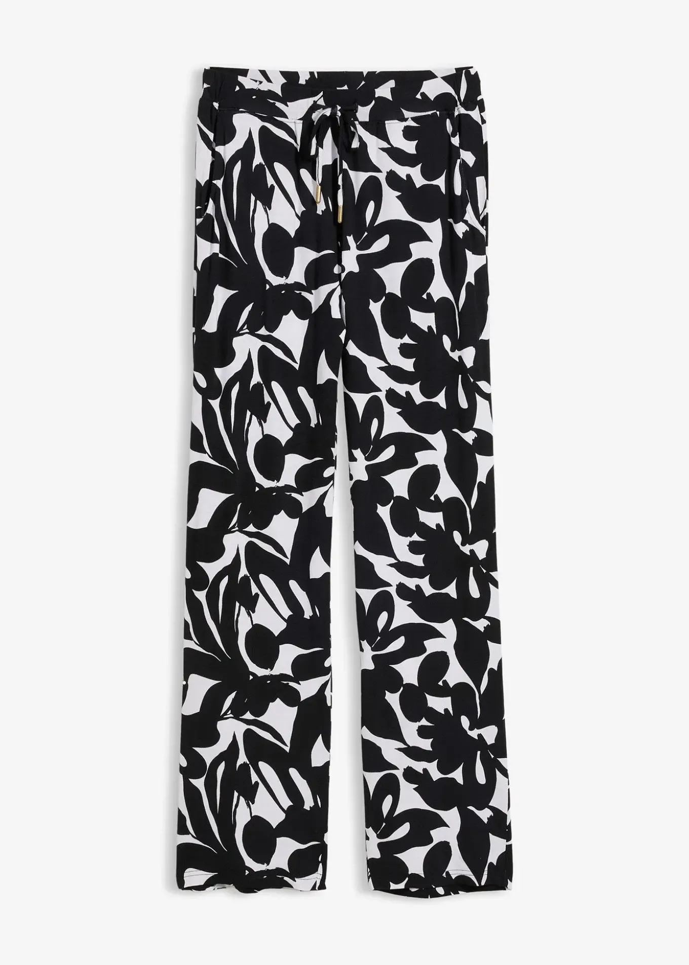Pantalon large à imprimé floral, poches et taille élastiquée.