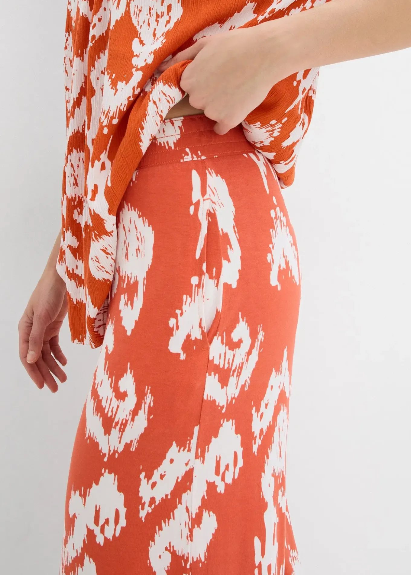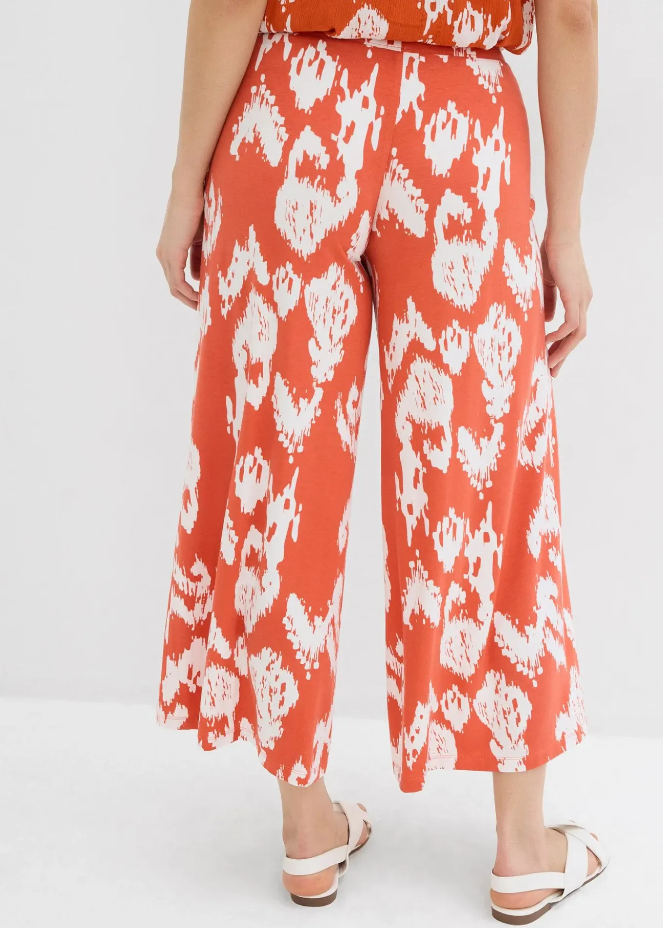 Pantalon court en jersey, taille haute, ample avec des poches en biais sur le côté
