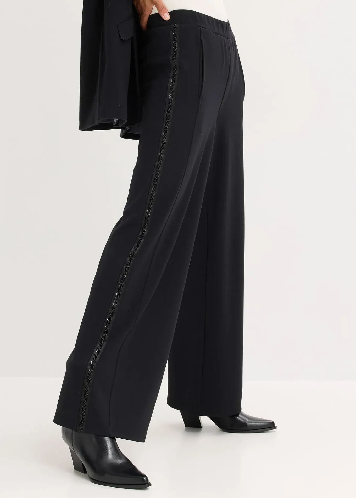 Pantalon élastiqué en Punto di Roma avec strass fantaisie