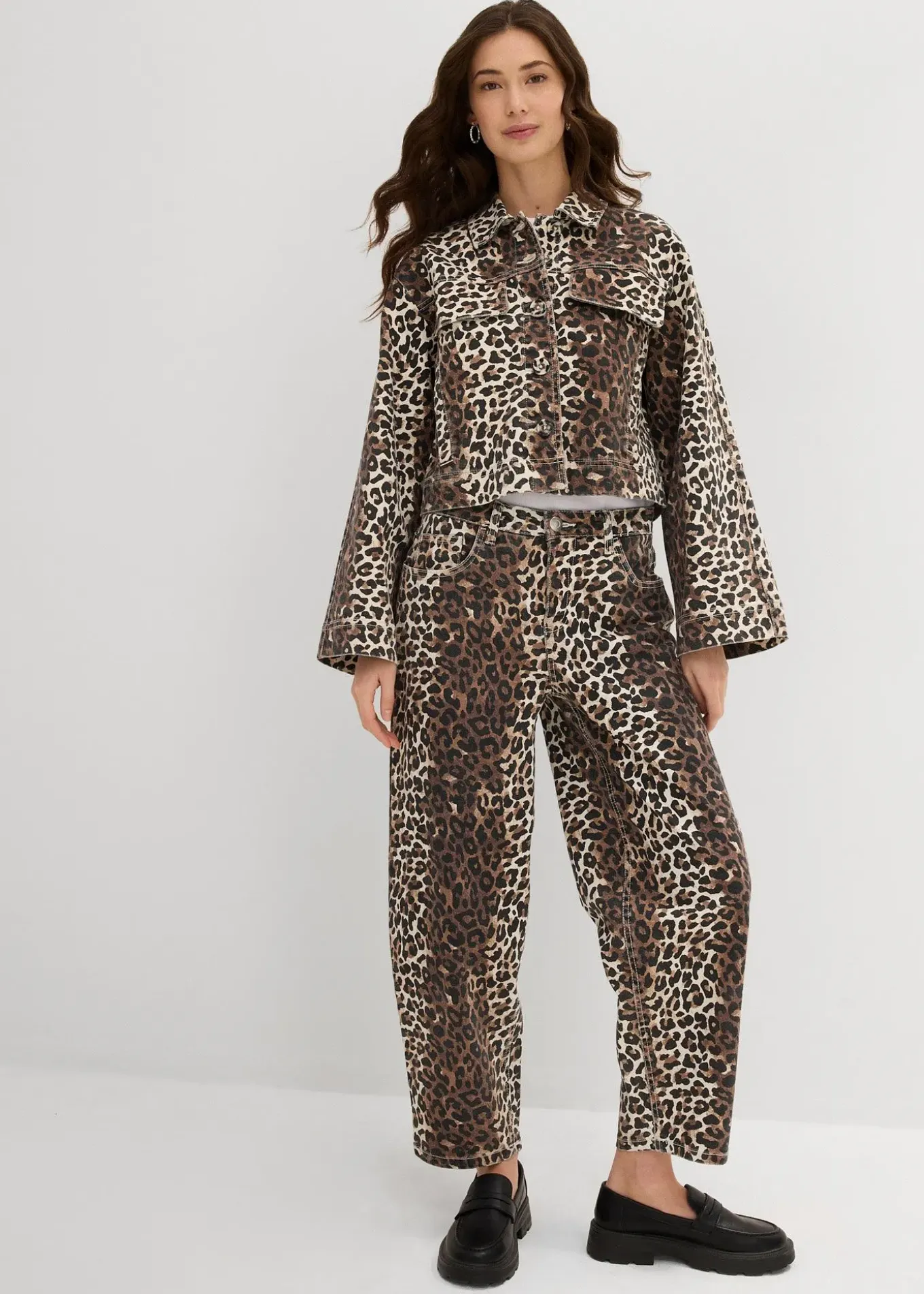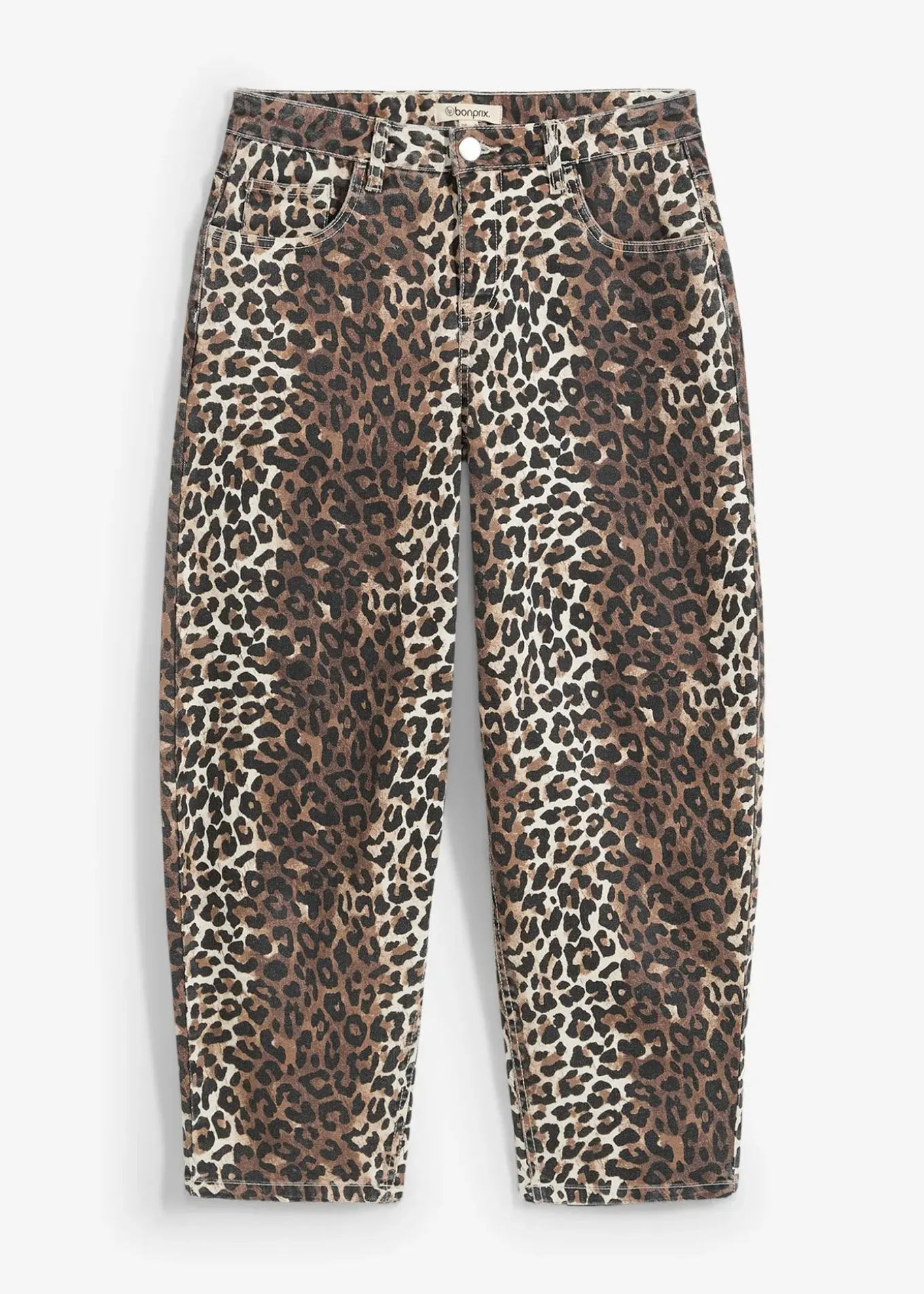 Jean Barrel ample à imprimé léopard, taille mi-haute