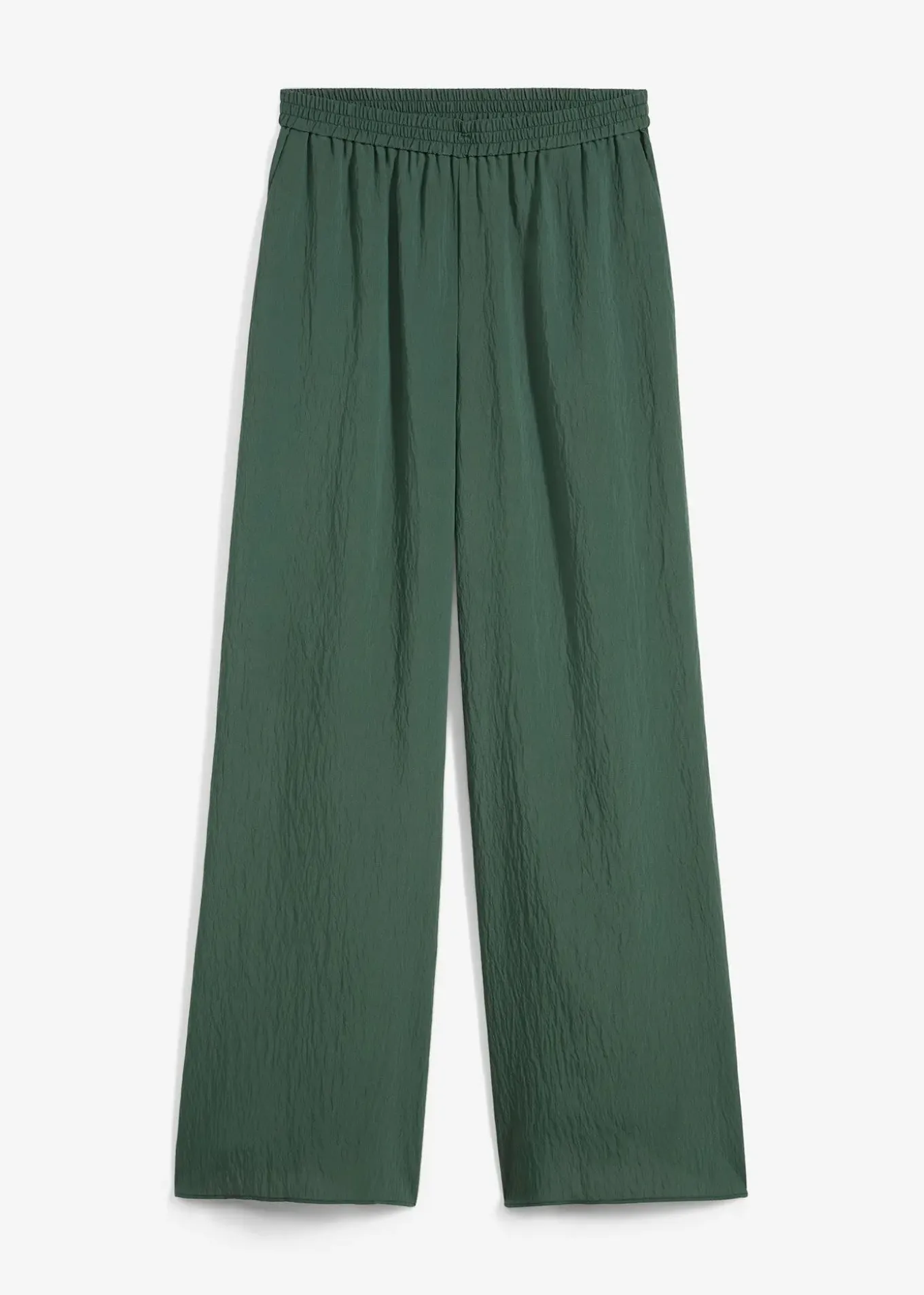 Pantalon large effet froissé, taille haute élastiquée, poches latérales