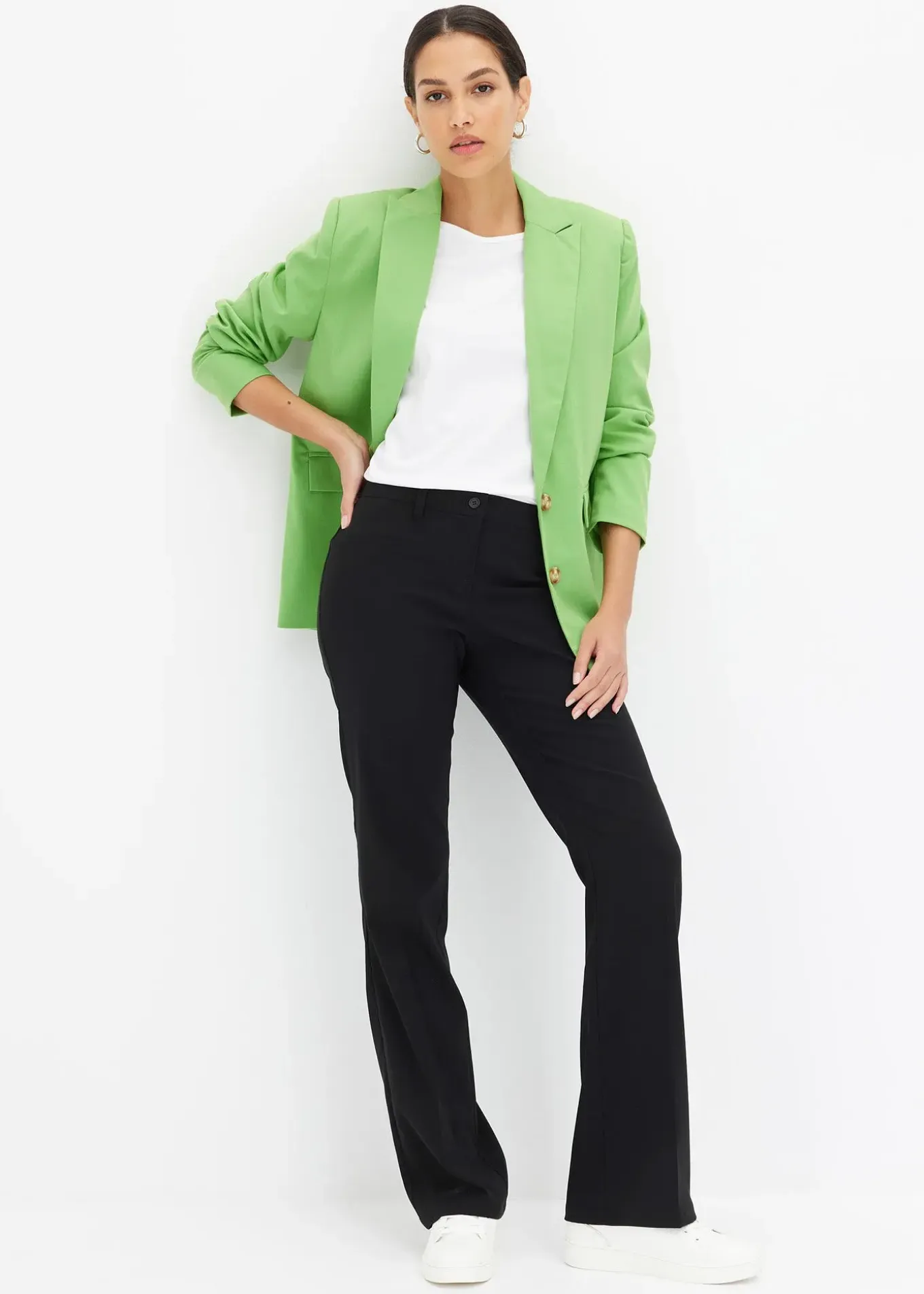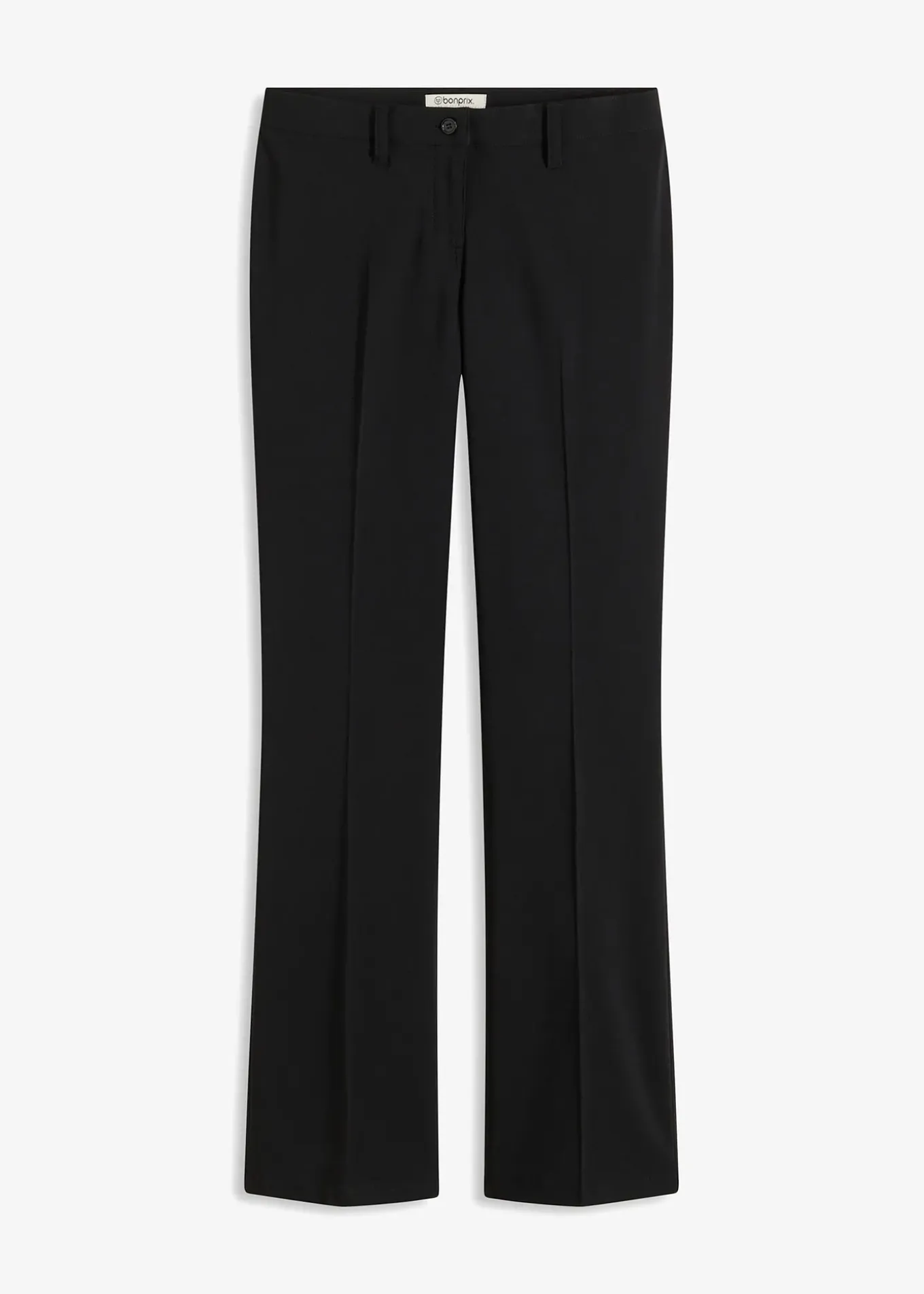 Jambes évasées mode, passants de ceinture et poches au dos, légèrement taille basse, long. entrejambe env. 82,5 cm.