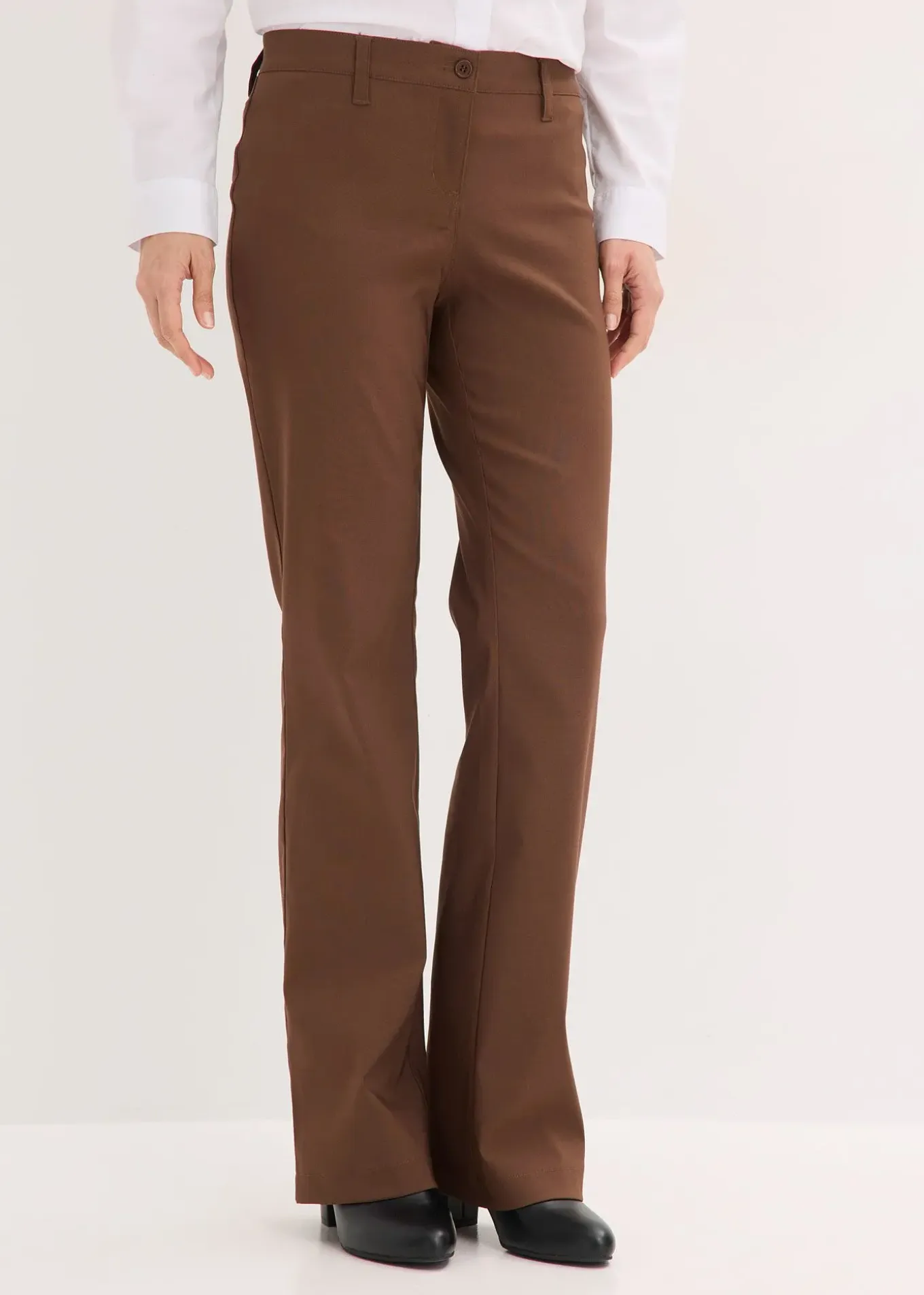 Jambes évasées mode, passants de ceinture et poches au dos, légèrement taille basse, long. entrejambe env. 82,5 cm.