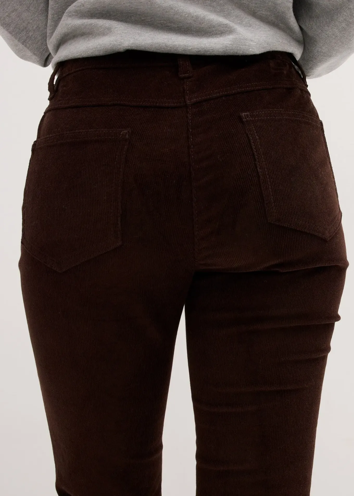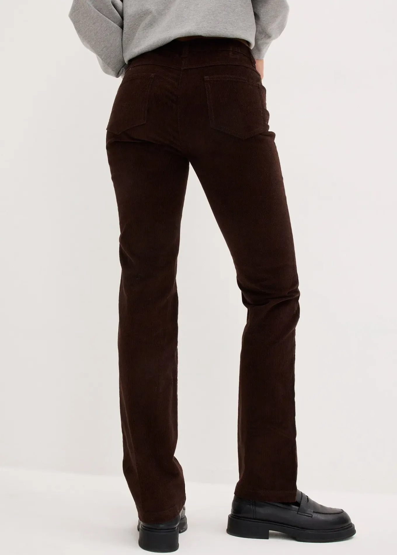 Pantalon extensible en velours côtelé doux, jambe étroite