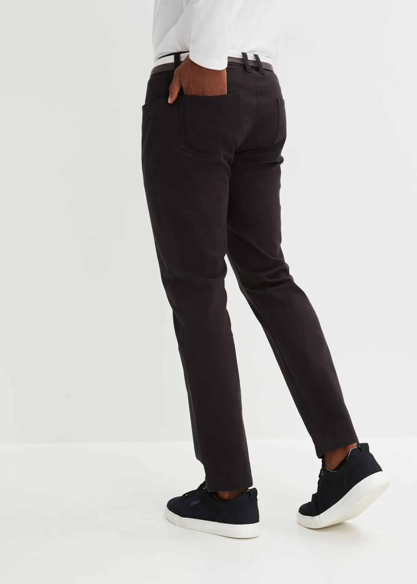 Beau pantalon 5 poches basique, jambe droite avec ceinture bicolore