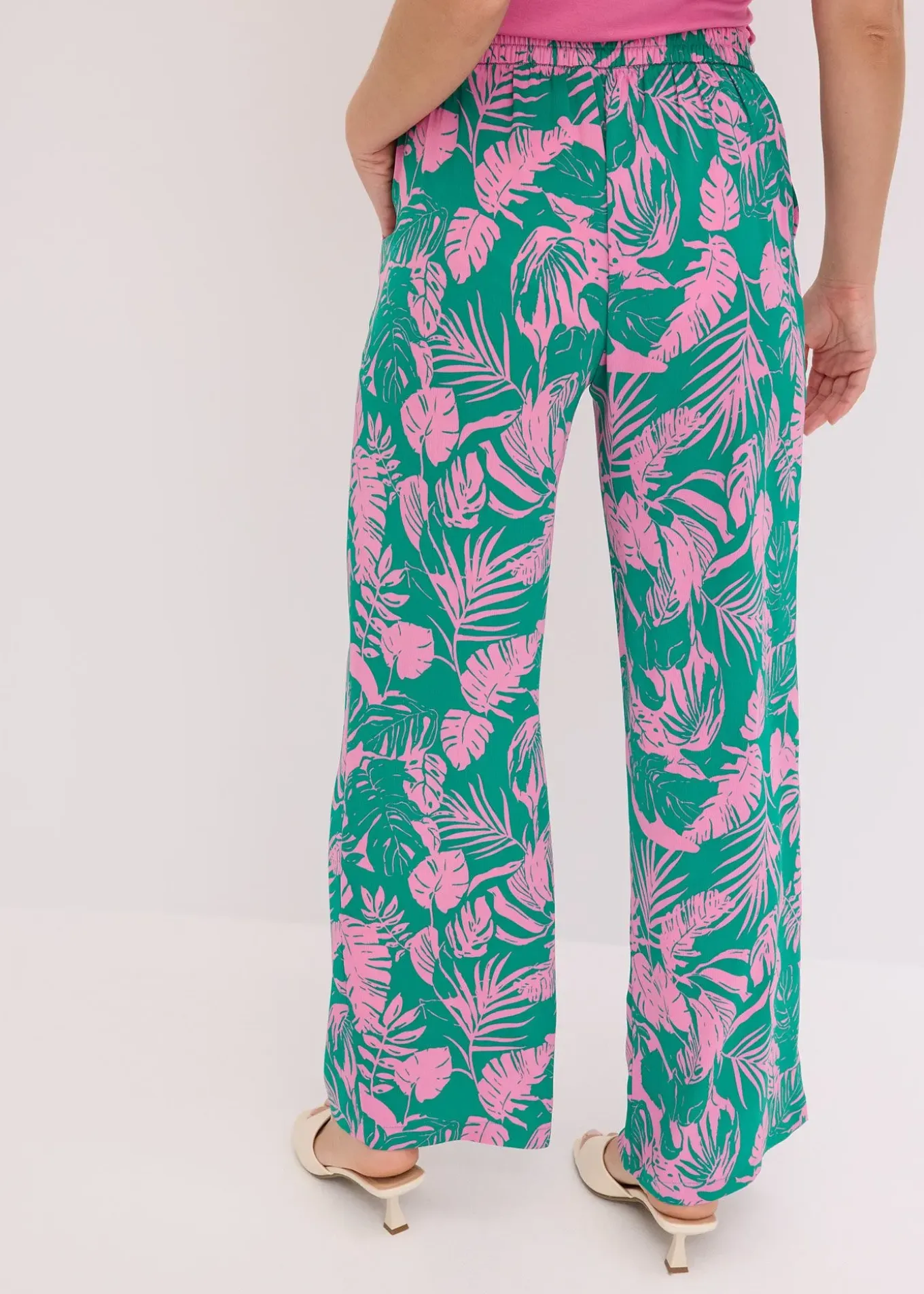 Pantalon ample et tendance en satin texturé avec ceinture élastiquée à l’arrière et imprimé floral