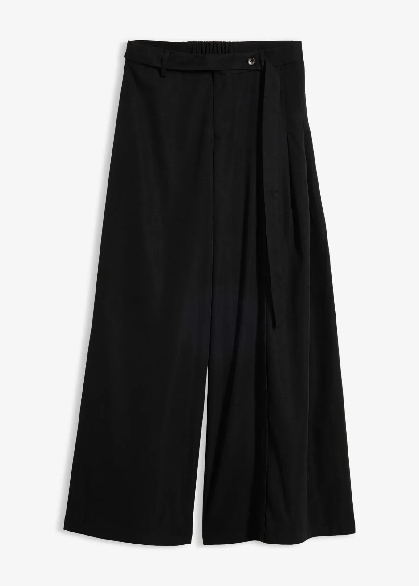 Pantalon large et fluide à taille semi-élastiquée avec un détail à nouer et un bouton
