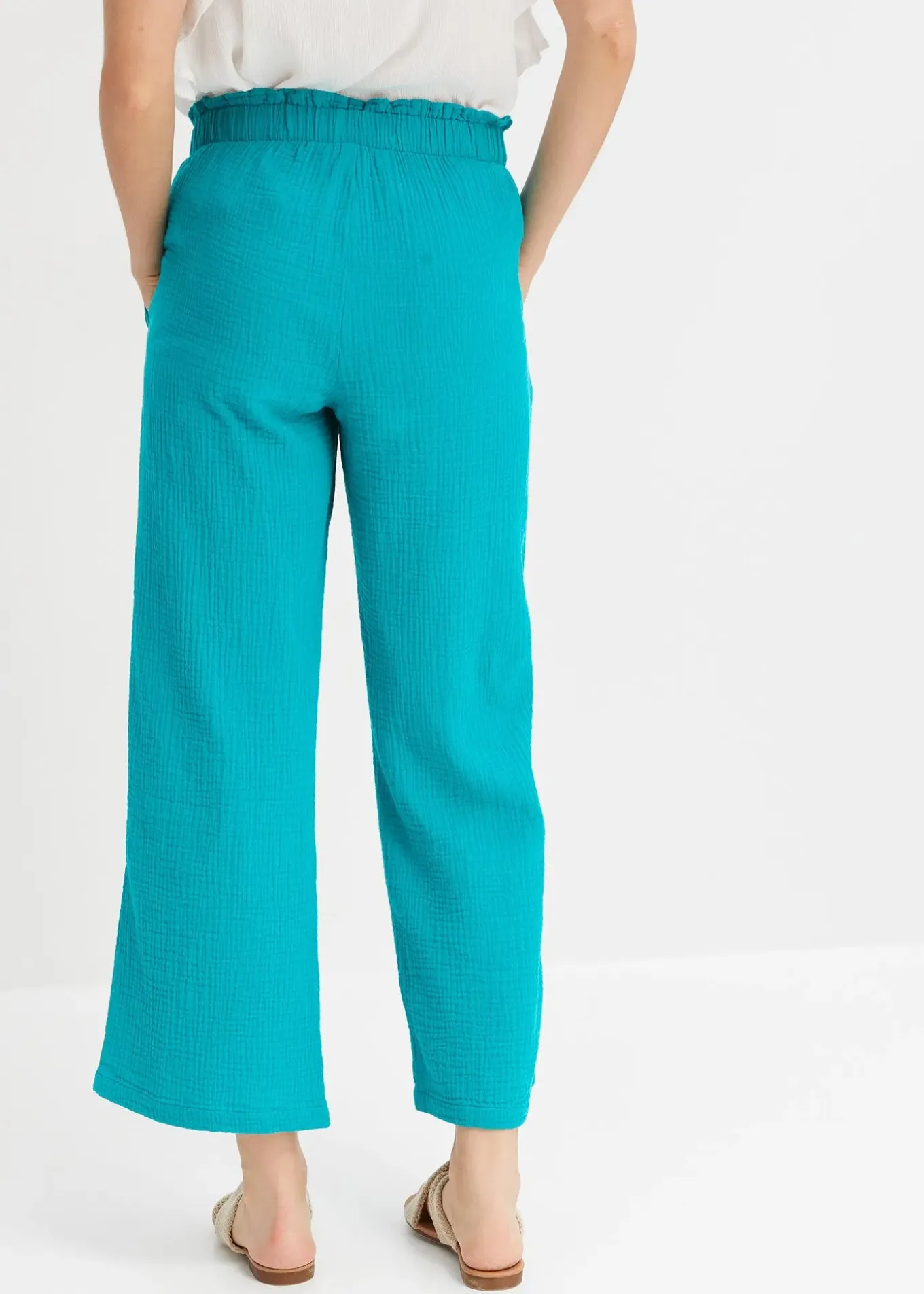 Pantalon large et mode en gaze de coton à taille élastiquée.