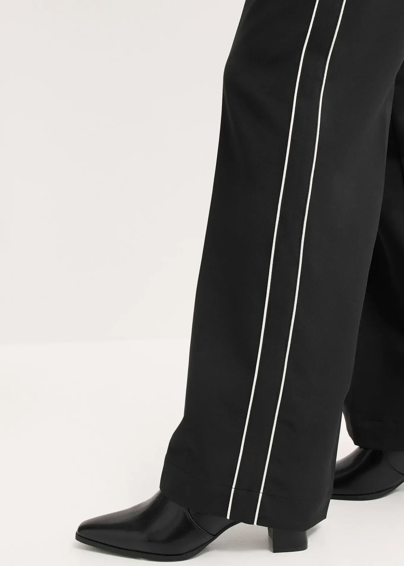 Pantalon large et décontracté à galons décoratifs et taille élastiquée
