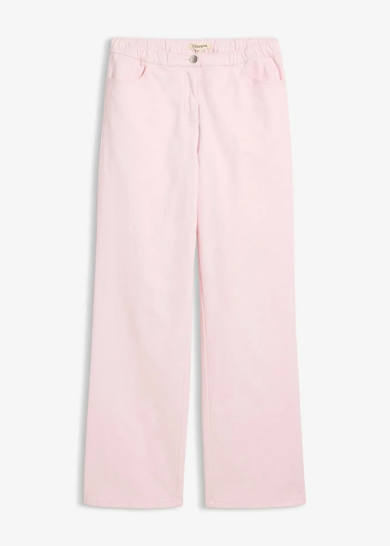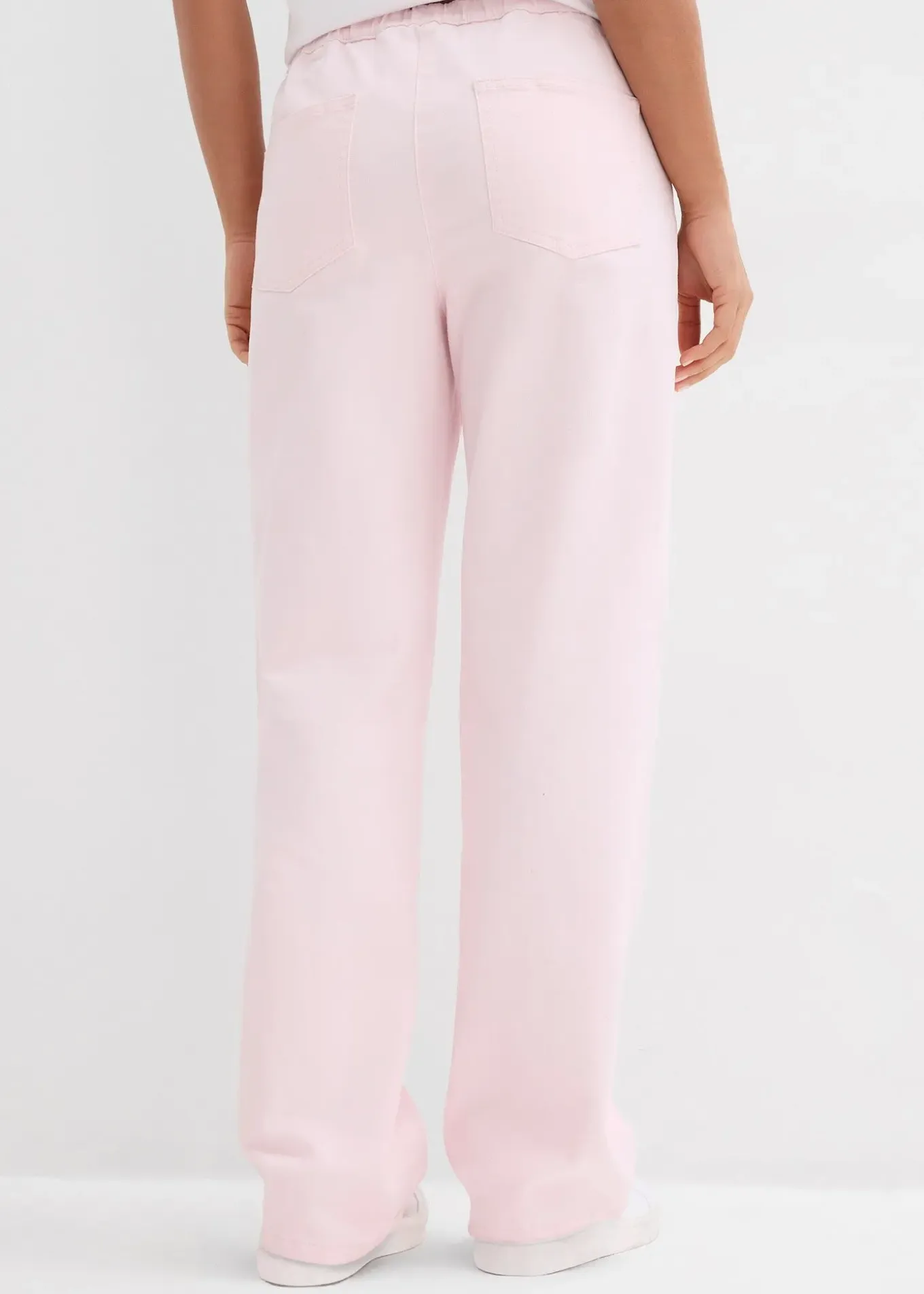 Pantalon large à taille haute et élastiquée, deux poches devant