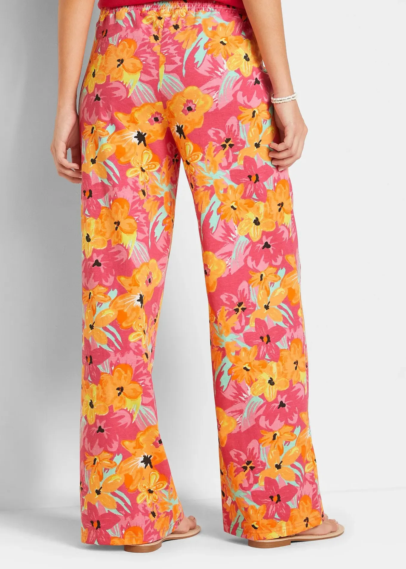 Pantalon palazzo ample avec taille entièrement élastiquée et imprimé très coloré
