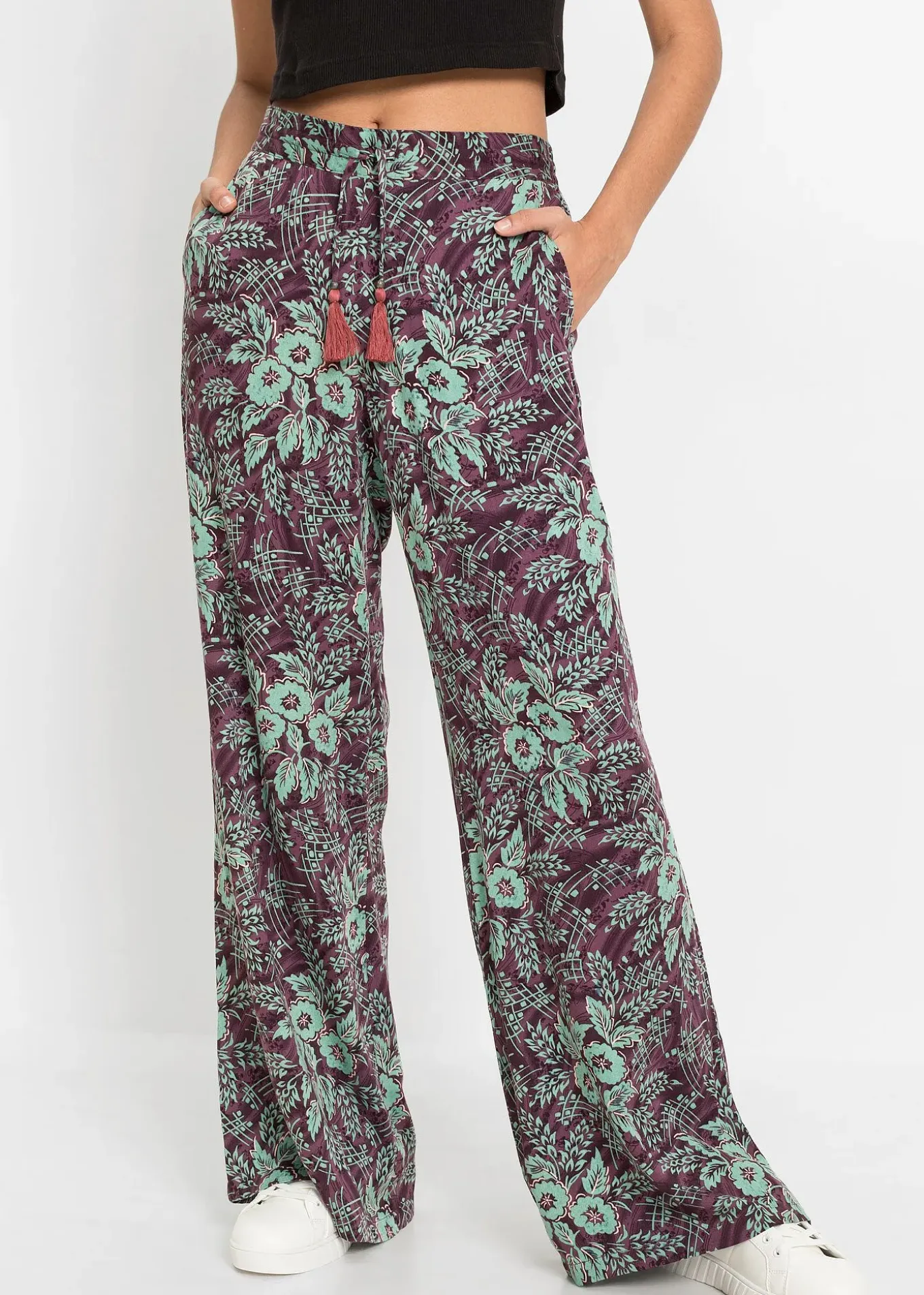 Pantalon palazzo en viscose fluide à imprimé floral