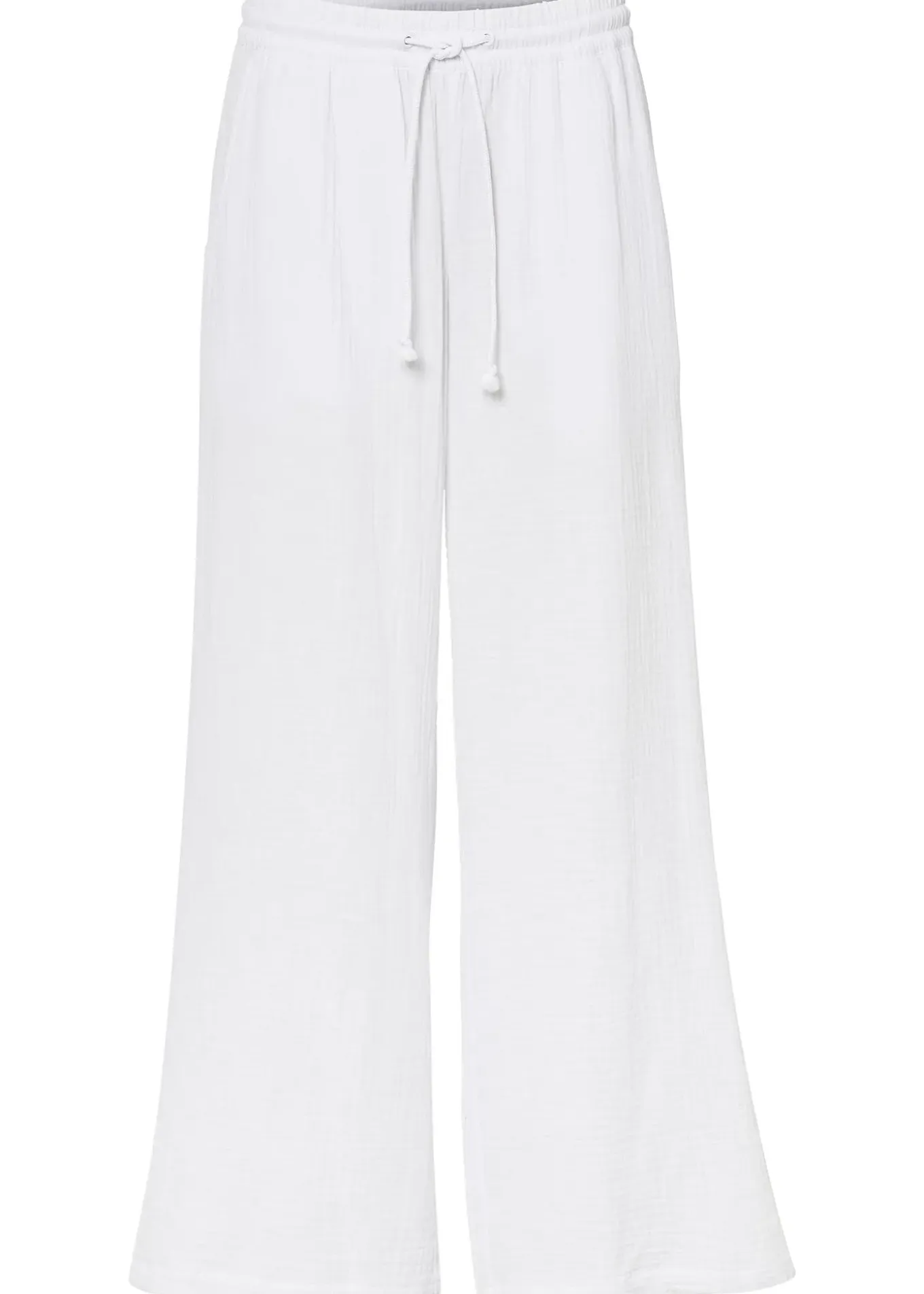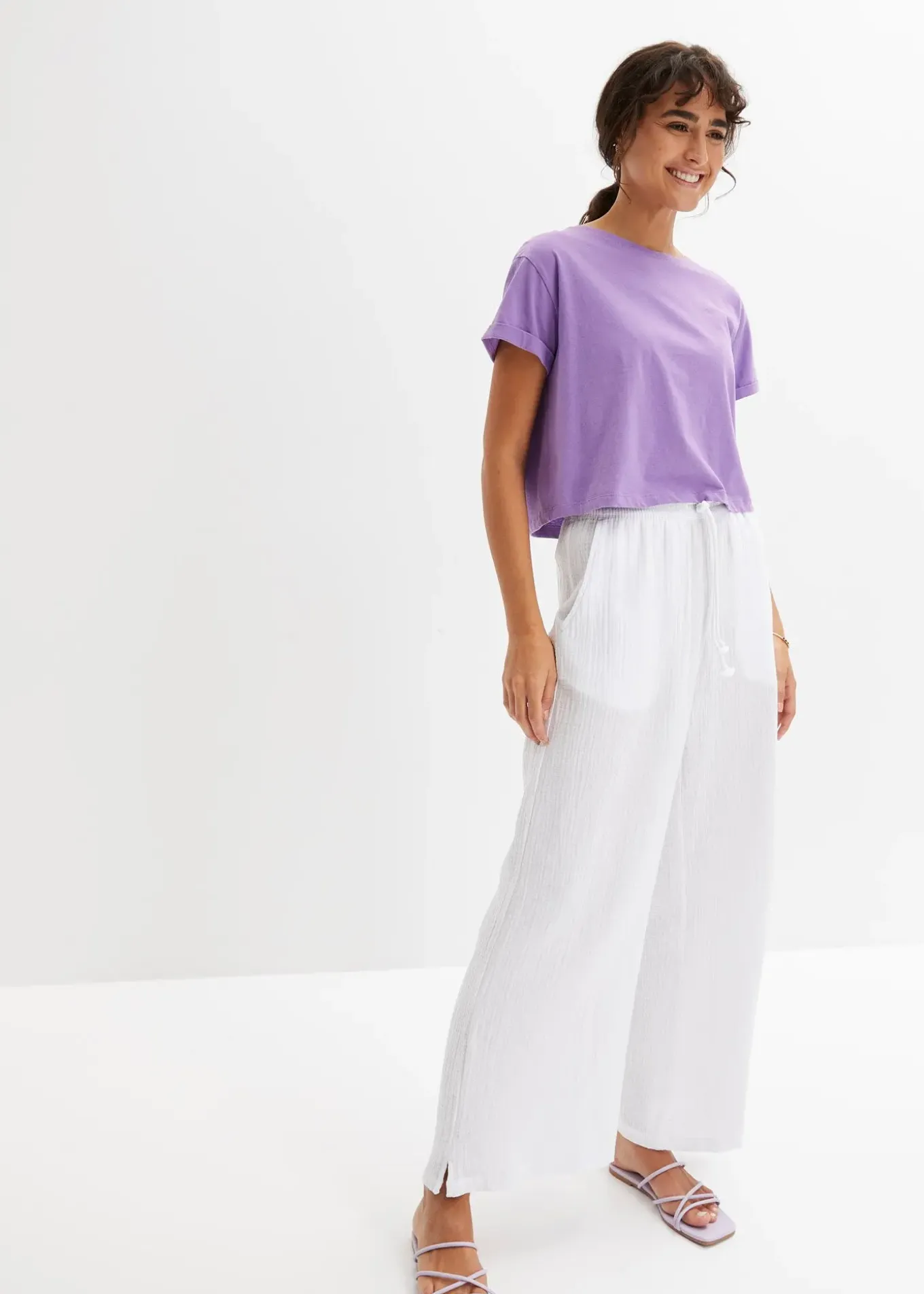 Pantalon palazzo confortable et estival en gaze de coton, taille élastiquée, longueur cheville