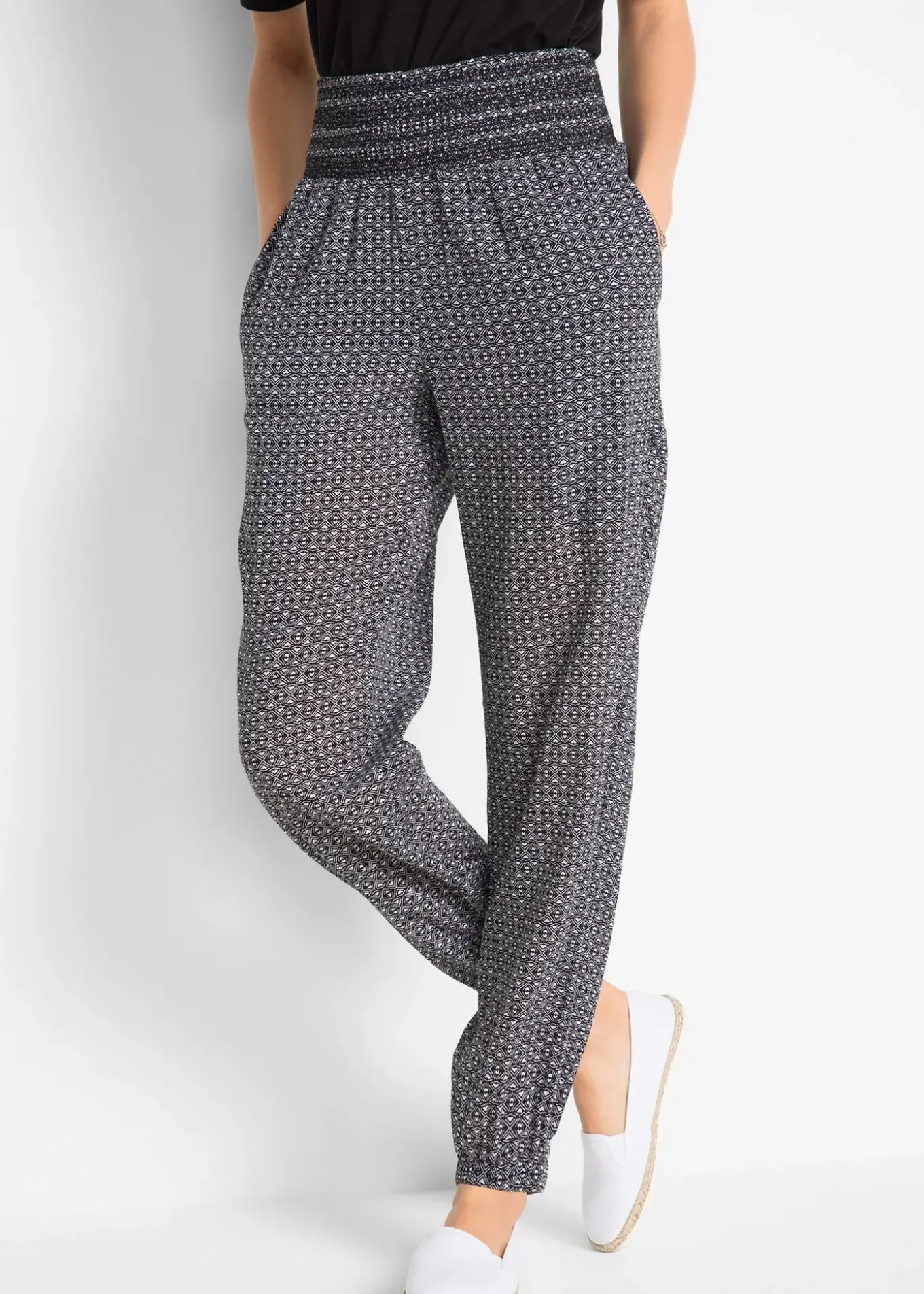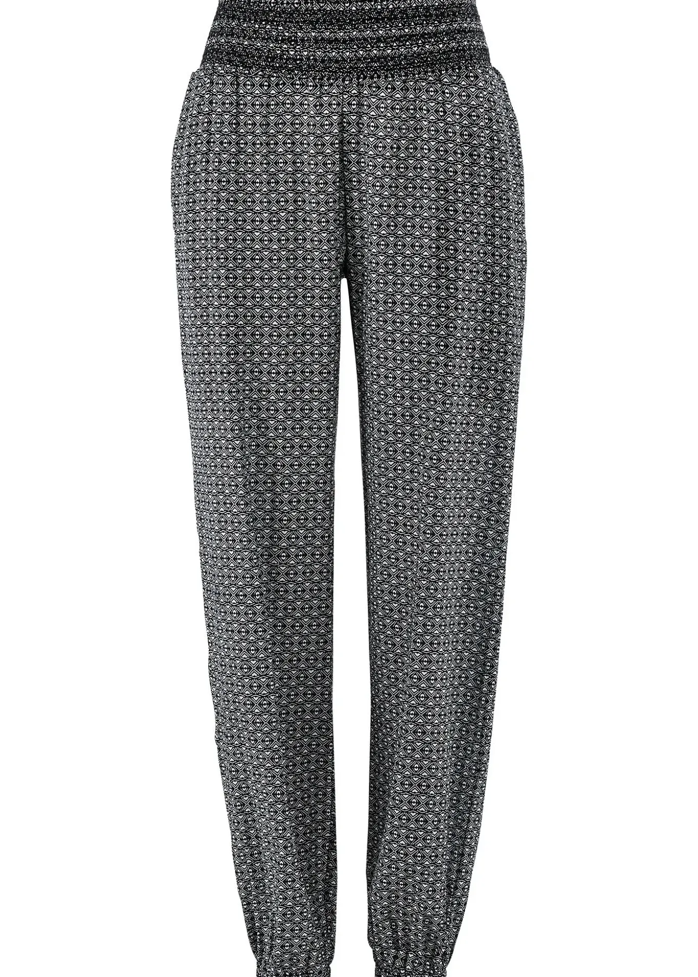 Pantalon tout confort entièrement élastiqué à la taille et en bas de jambes pour une très grande liberté de mouvement. L’élastique coulissé à la taille s’ajuste à chaque silhouette. Ce sarouel en matière froissée agréable à porter est doté de poches latérales – qui restent discrètes. Long. entrejambe env. 79 cm, lavage machine.