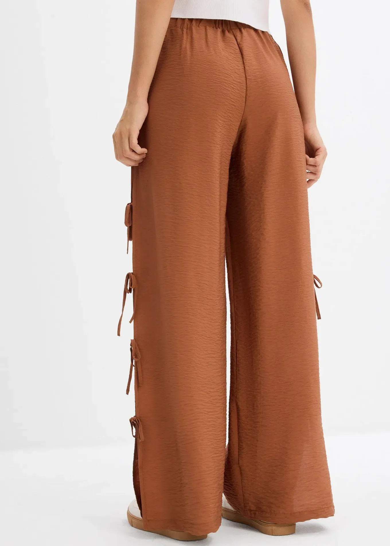 Pantalon taille élastiquée avec nouettes sur les côtés