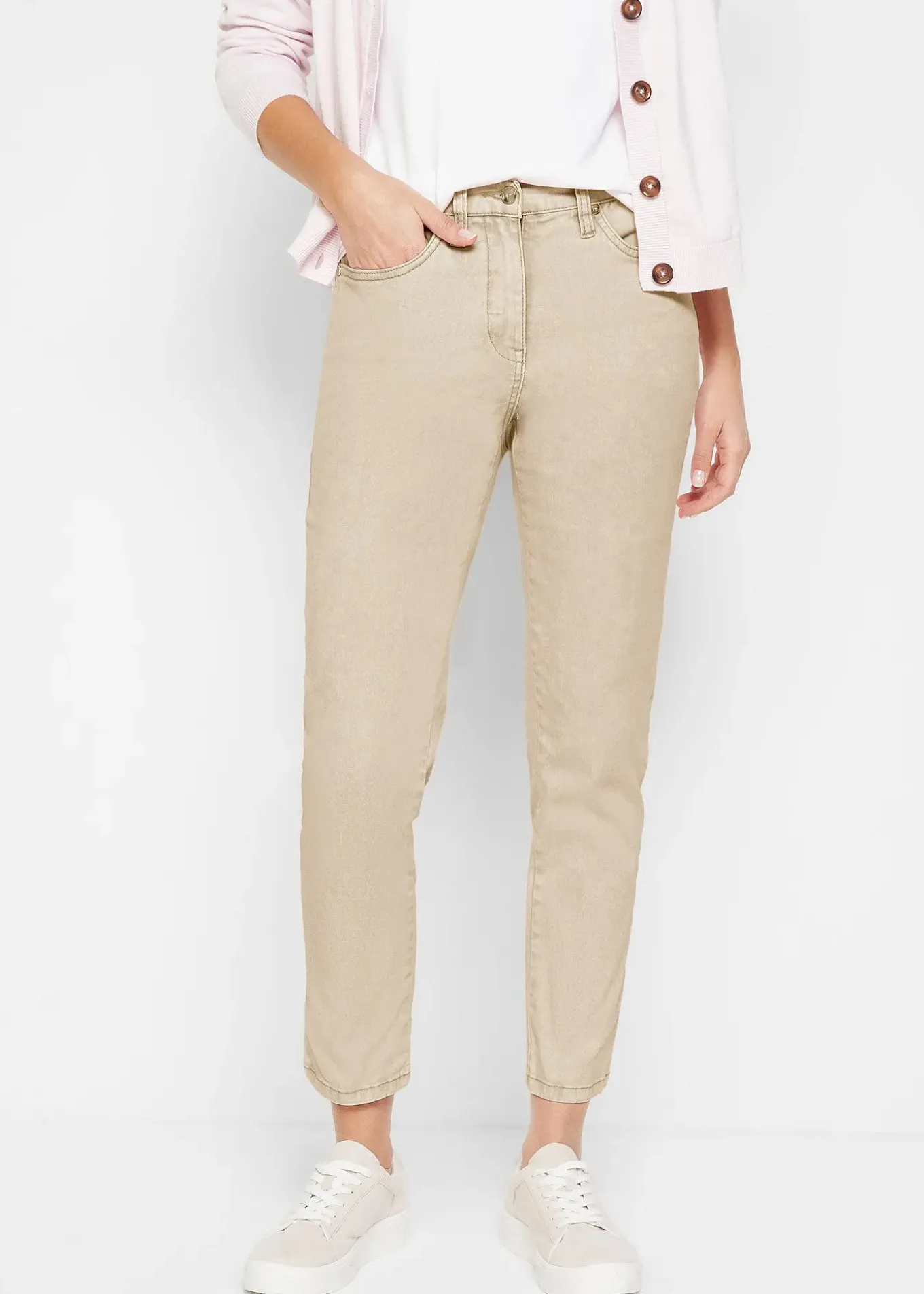 Pantalon twill confortable avec jambes raccourcies et délavage used, chaque pièce est unique