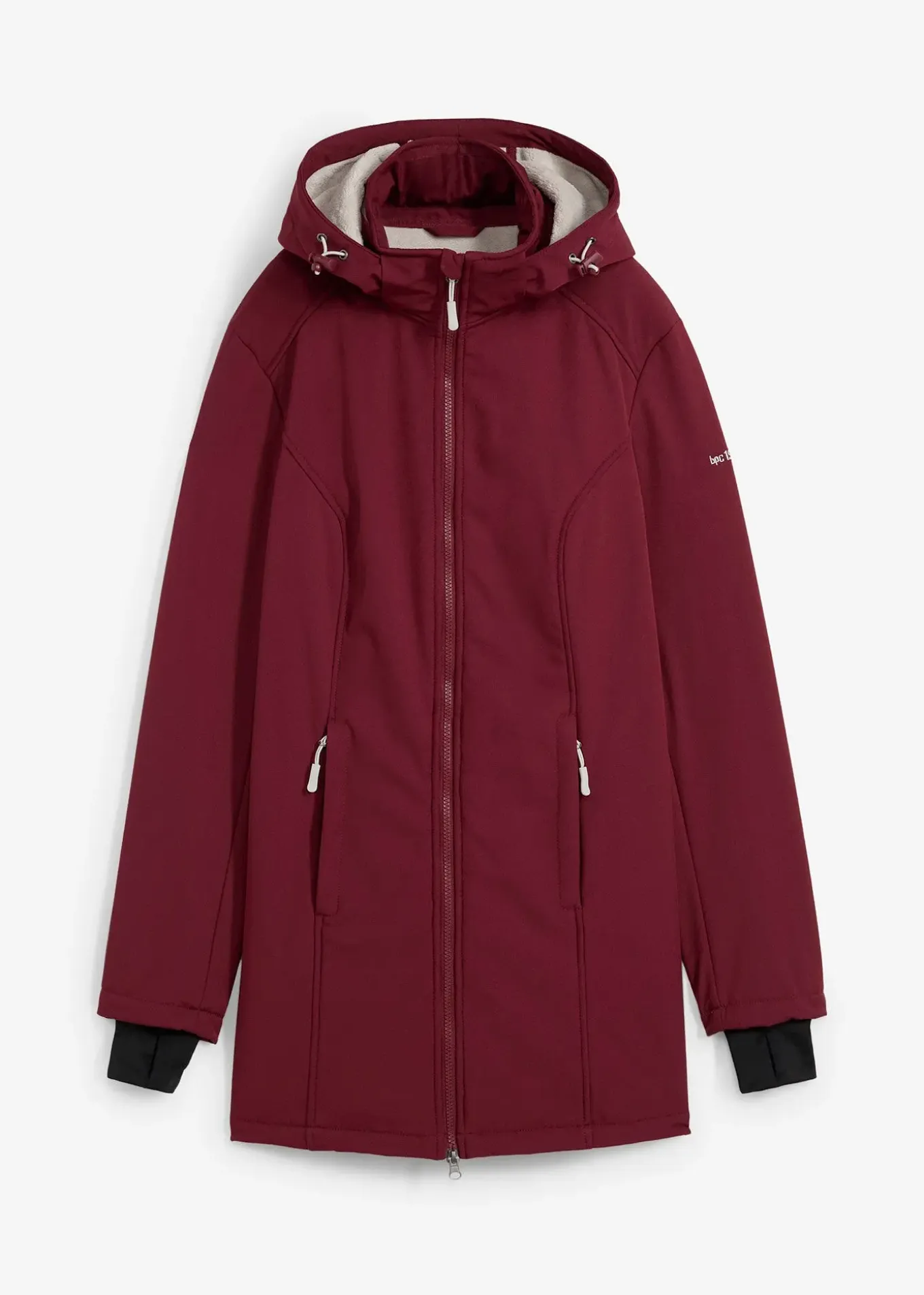 Parka outdoor confortable de bpc en softshell respirant, déperlant et coupe-vent. Base droite, doublure polaire douillette, capuche amovible, fermeture zippée double sens, 2 poches zippées, intérieur gratté.