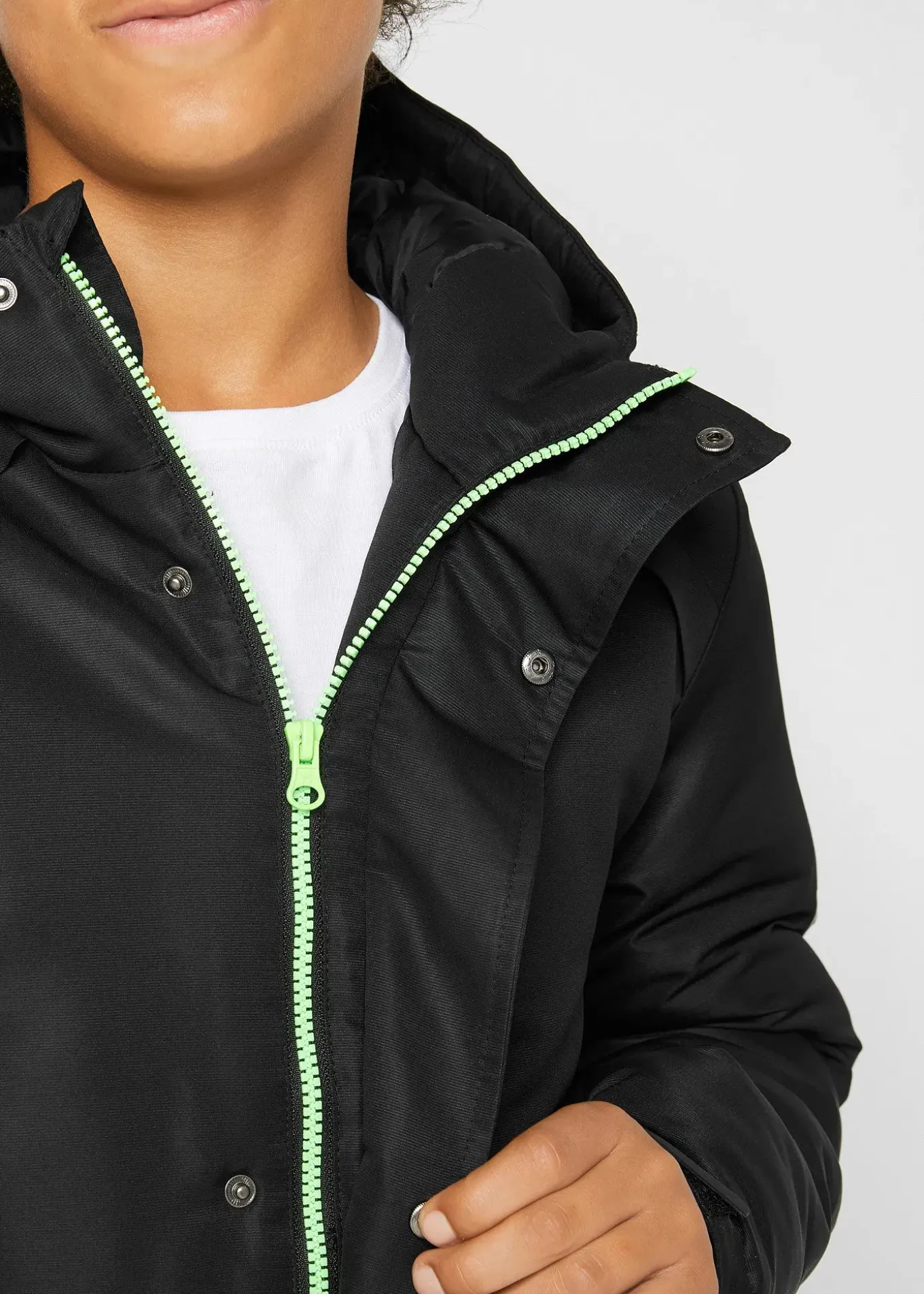 Parka d’hiver avec des détails fonctionnels et un motif mode. Fermeture zippée devant. Poches latérales. Avec capuche et poignets autoagrippants réglables pour une meilleure protection contre le froid. Grande inscription devant.