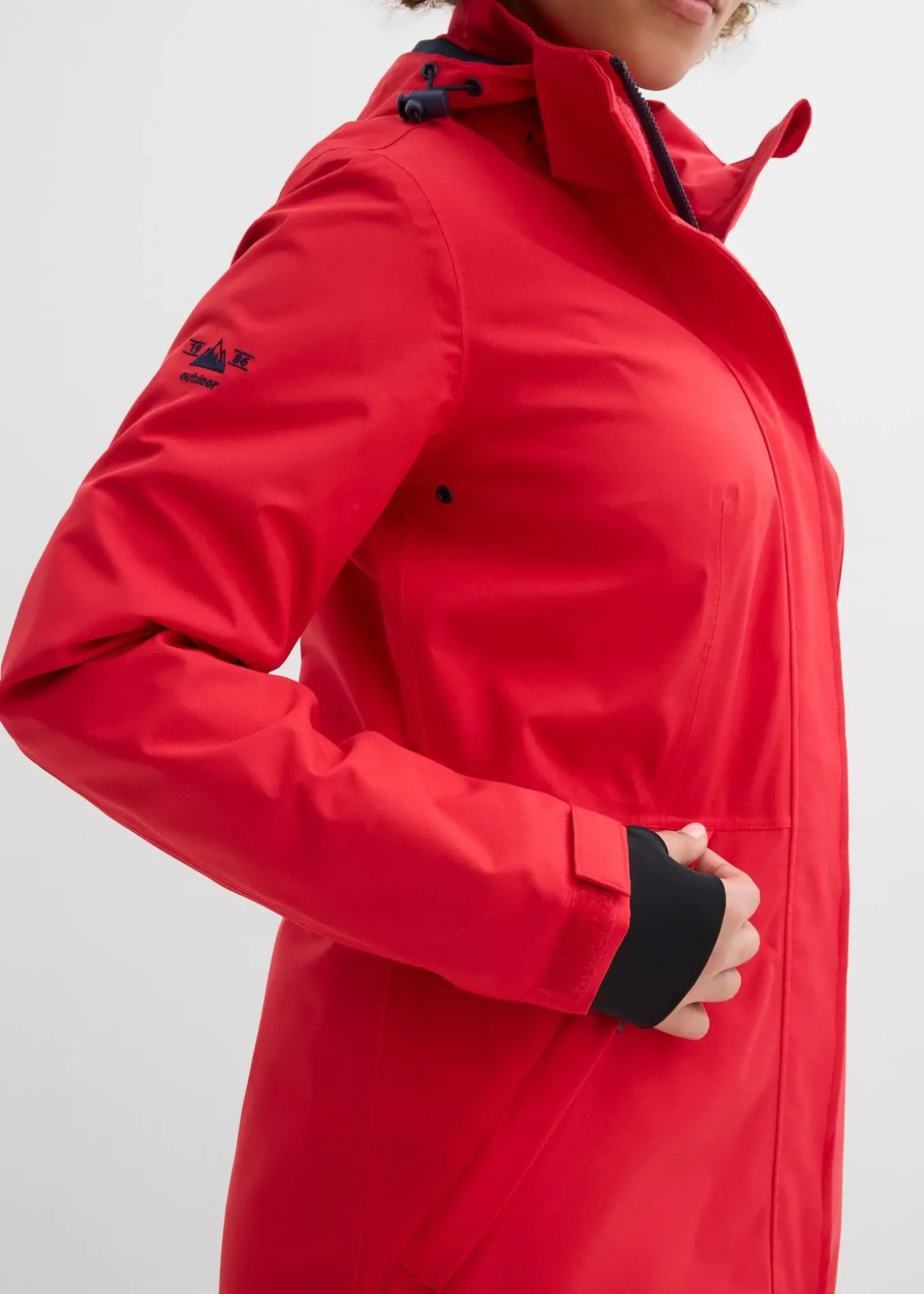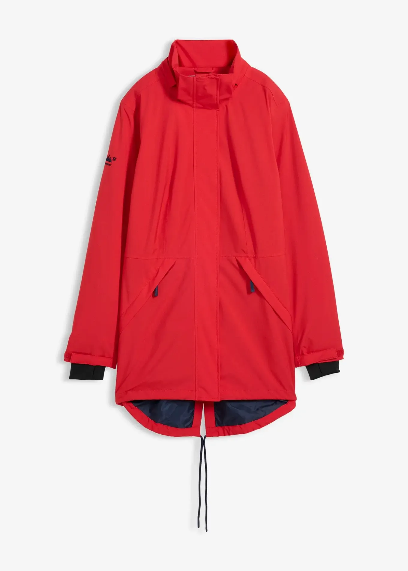Capuche amovible, poches zippées, mitaines, fermeture zippée avec protège-menton, ampleur réglable à la taille, poche intérieure avec sortie pour câble d’écouteurs, colonne d’eau 3000 mm, long. env. 90 cm.