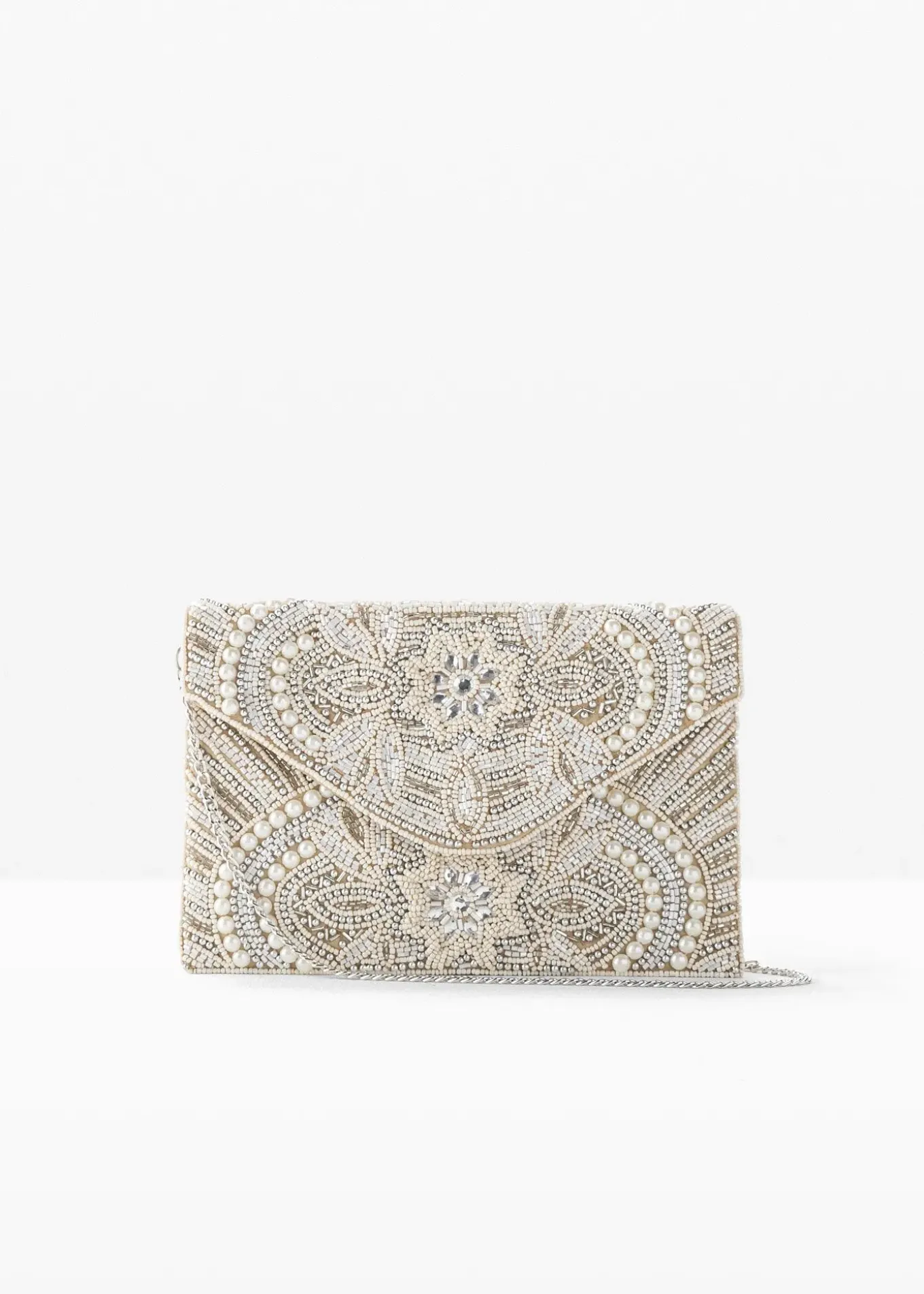 Avec cette pochette rebrodée de perles, vous êtes parfaitement parée pour les occasions festives, notamment les mariages. Complétez votre look chic avec ce bel accessoire et attirez tous les regards sur vous.