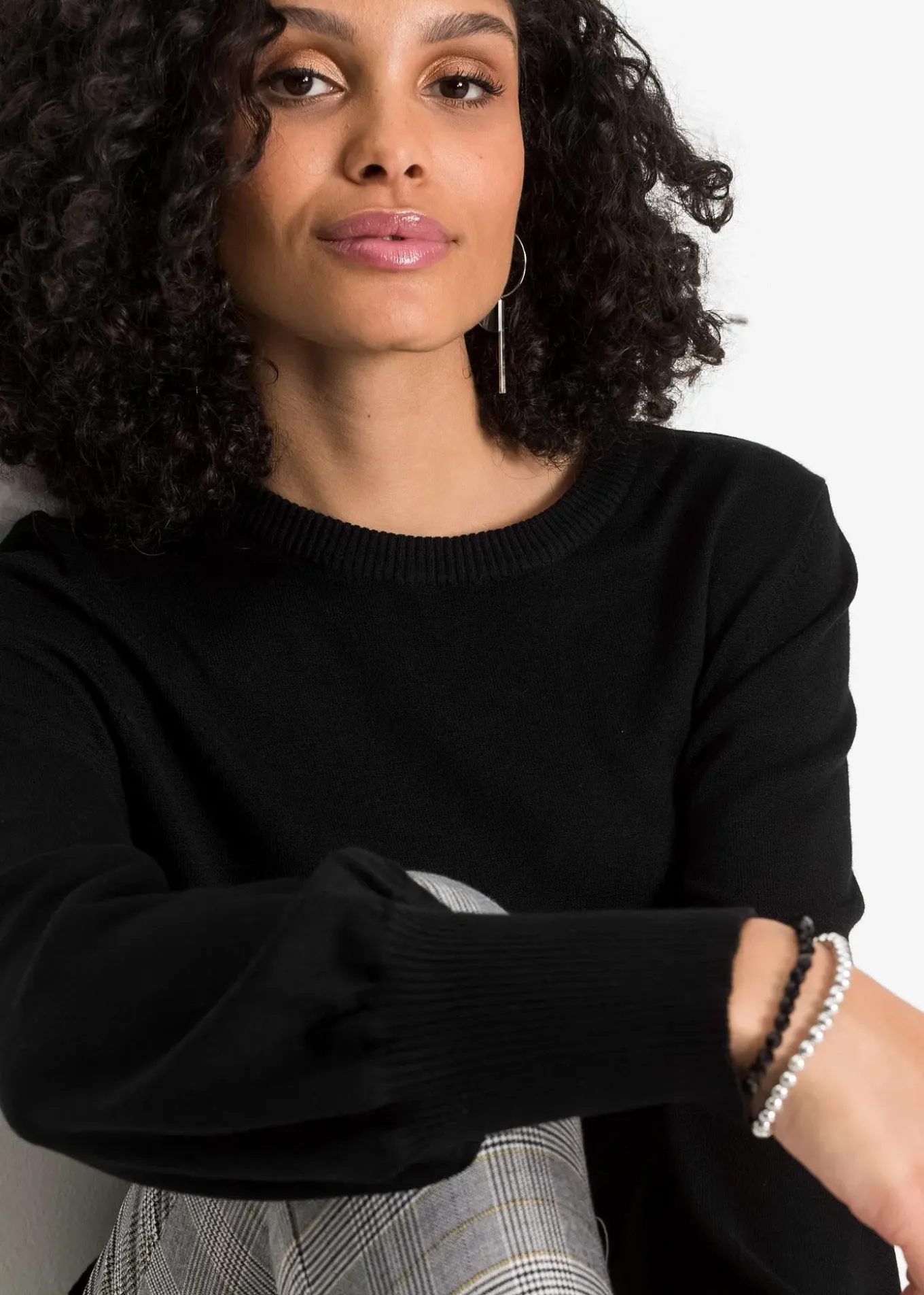 Pull à manches ballon et encolure ronde. Long. env. 60 cm.