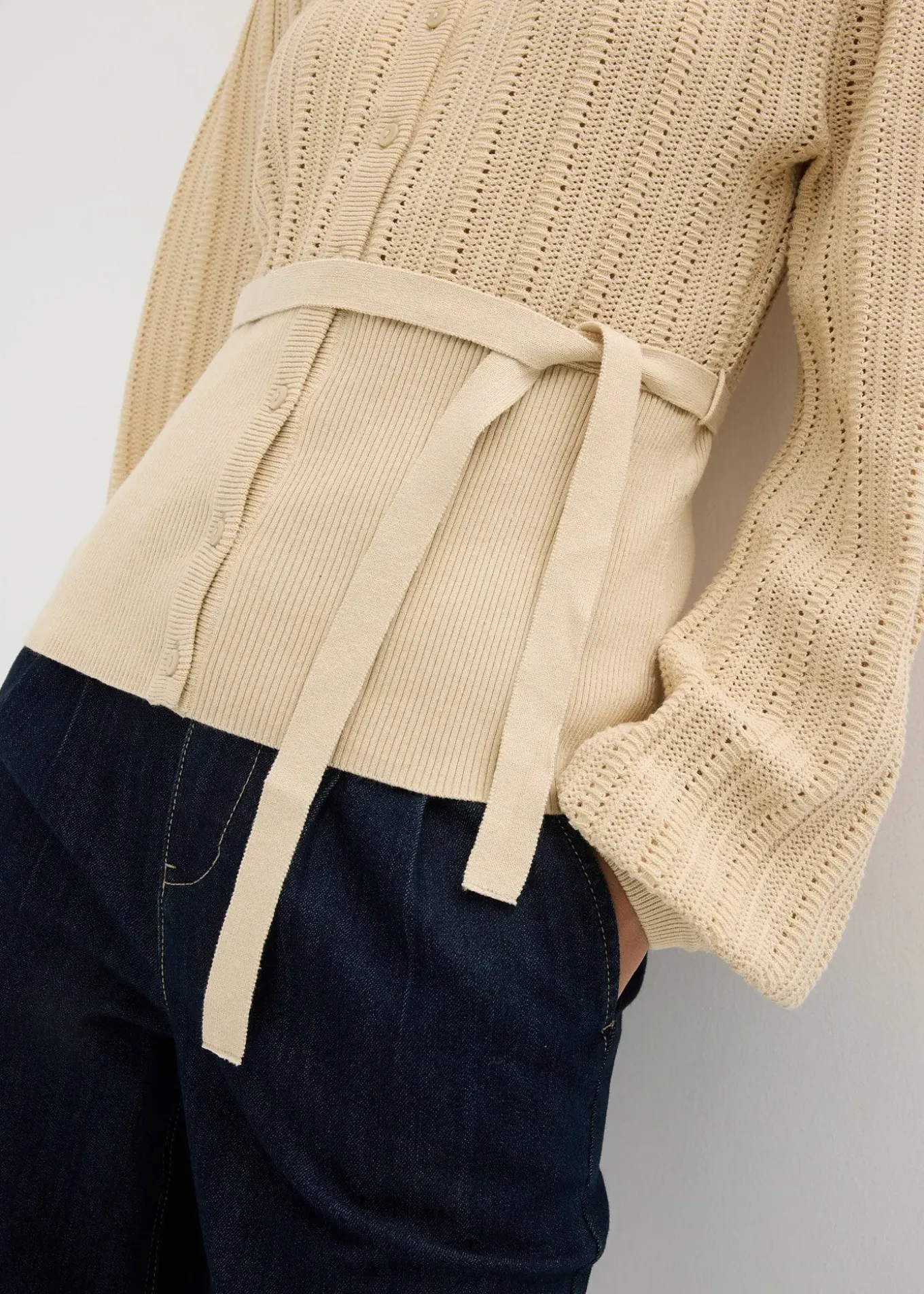 Pull moderne boutonné, qui souligne la taille