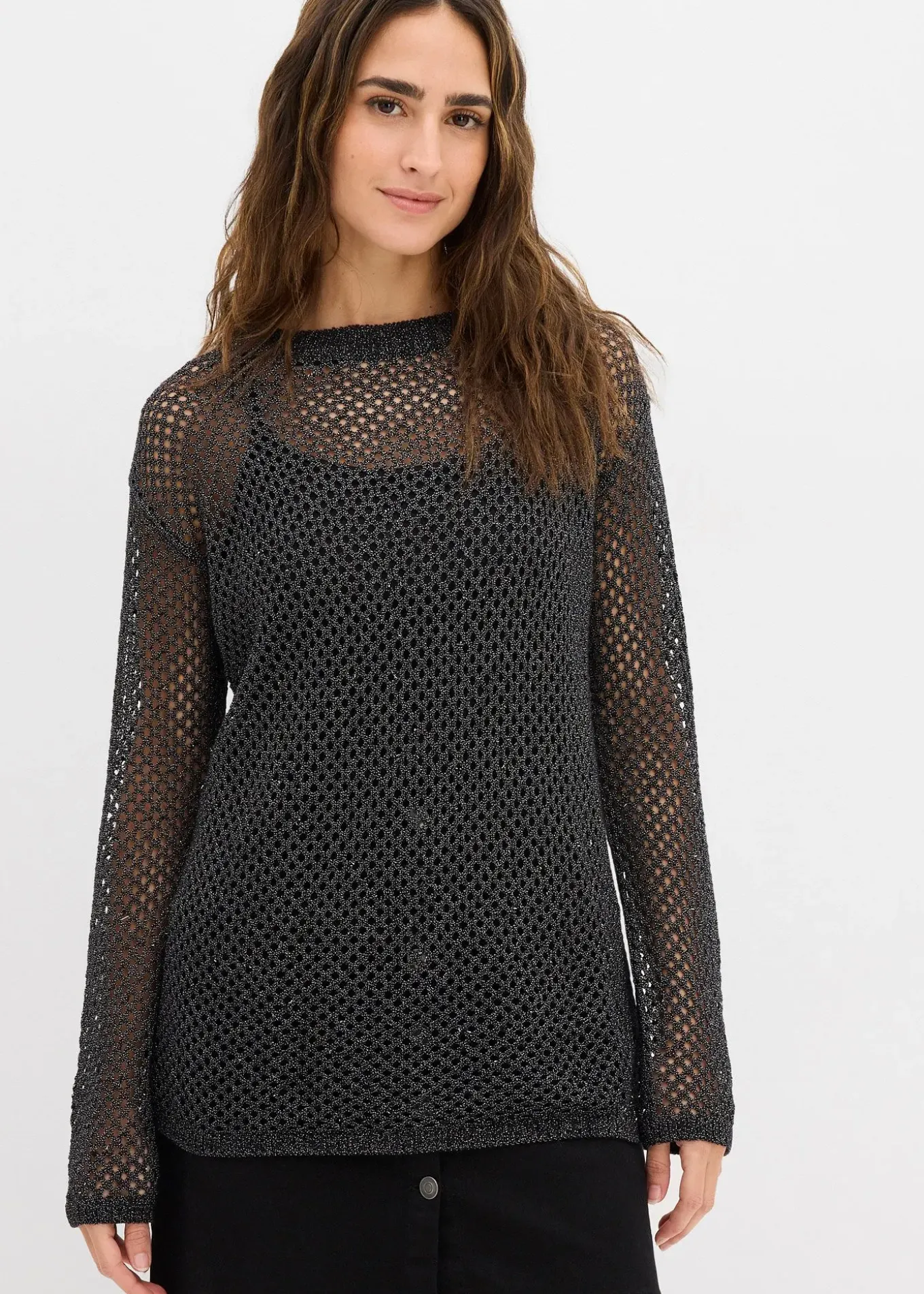 Pull décontracté en maille ajourée avec fil lurex