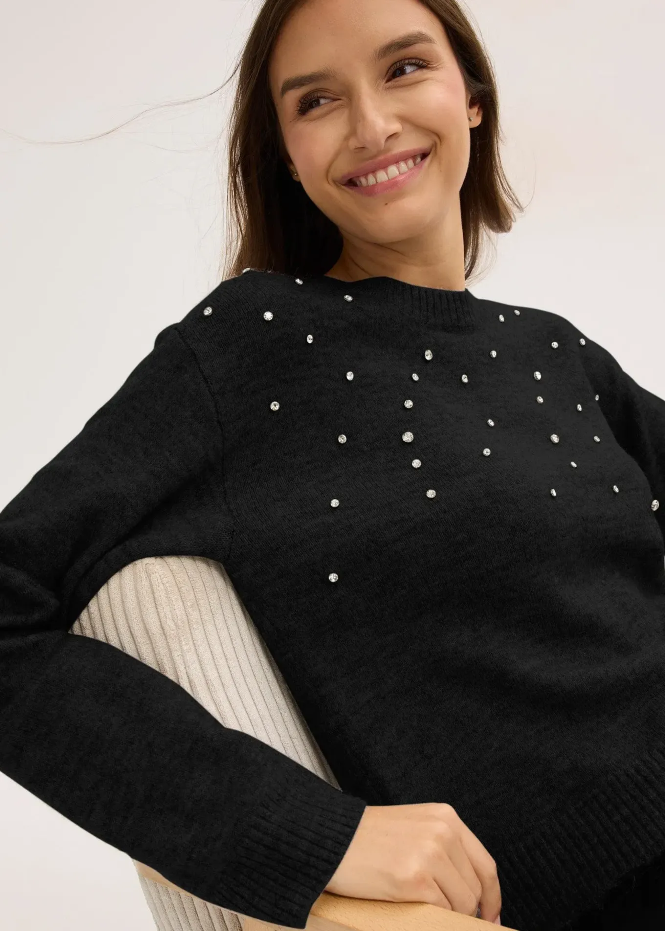 Pull douillet avec strass appliqués