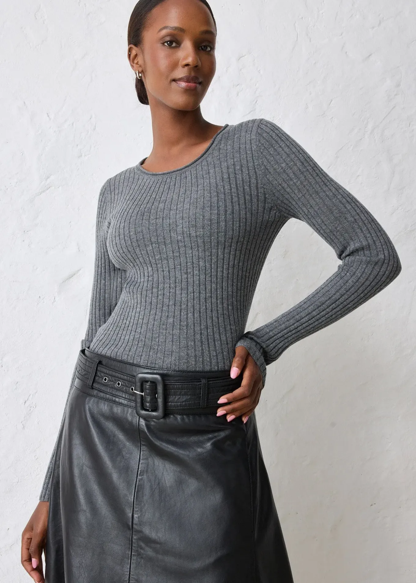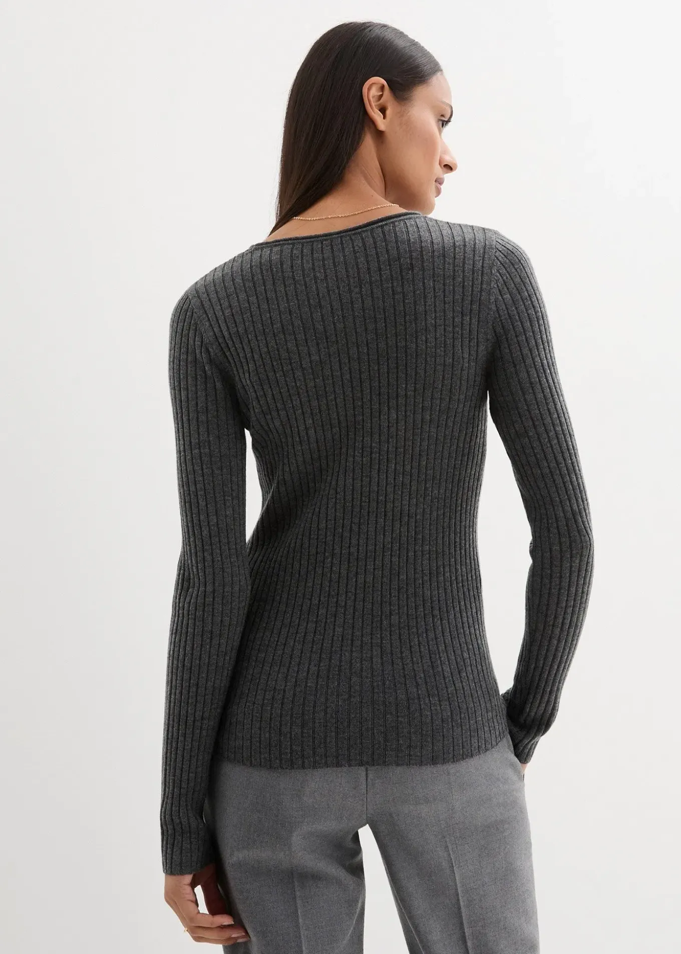 Pull côtelé à col rond 100% laine mérinos de qualité supérieure