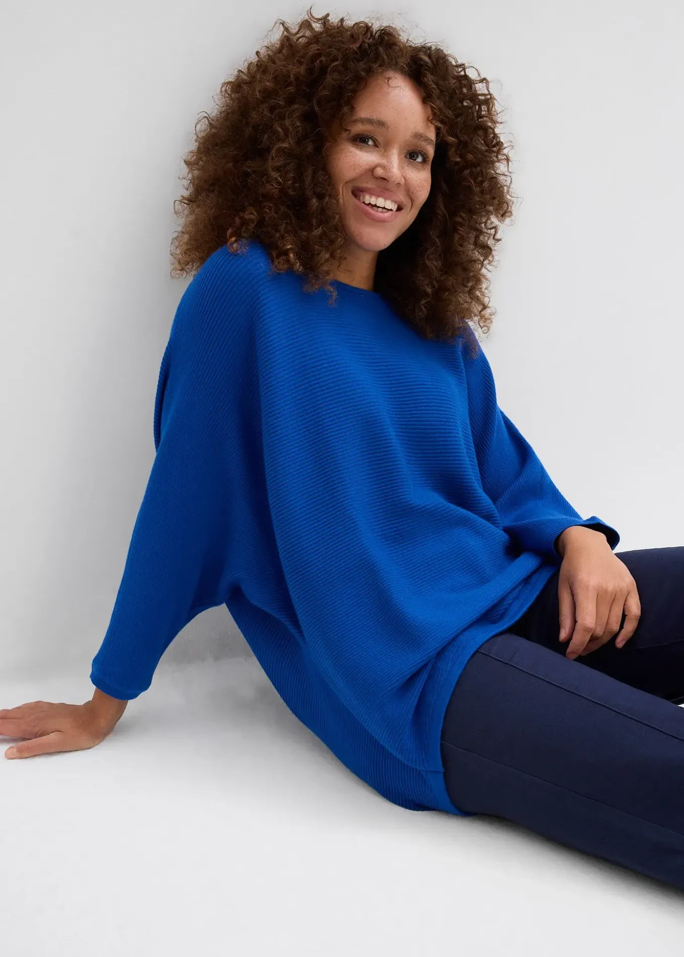 Pull côtelé manches 3/4 décontracté