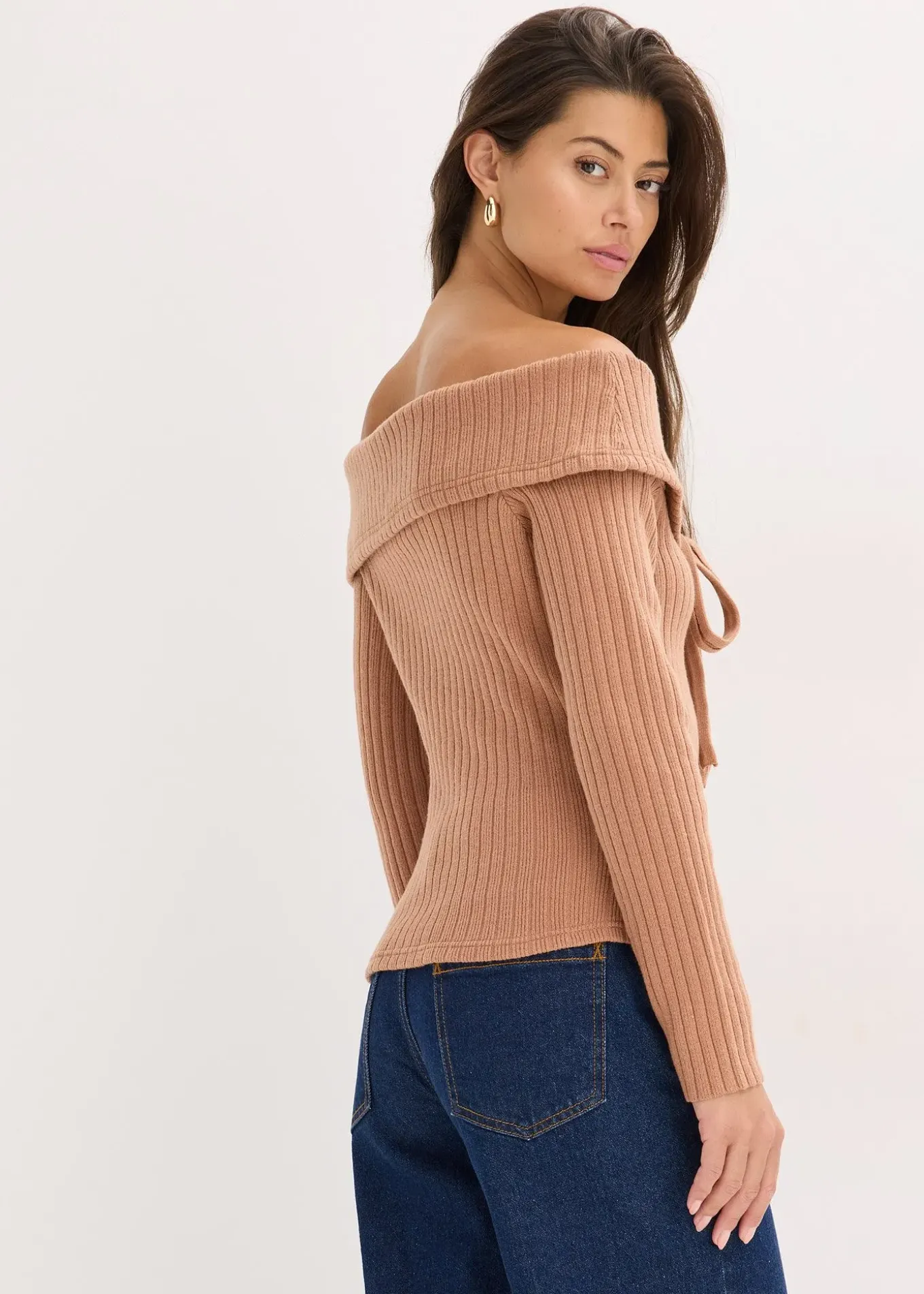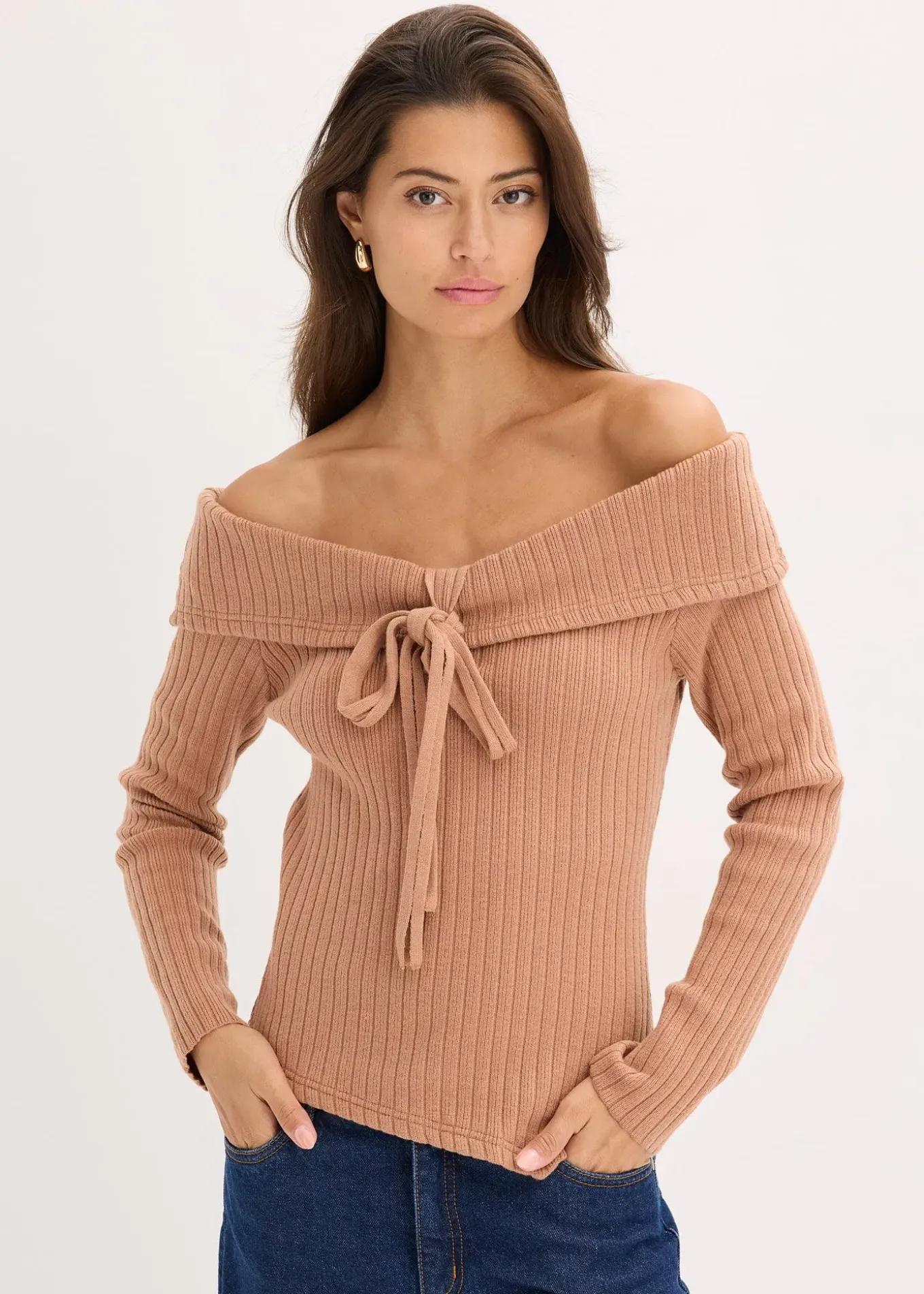 Pull col Bardot moderne en maille côtelée