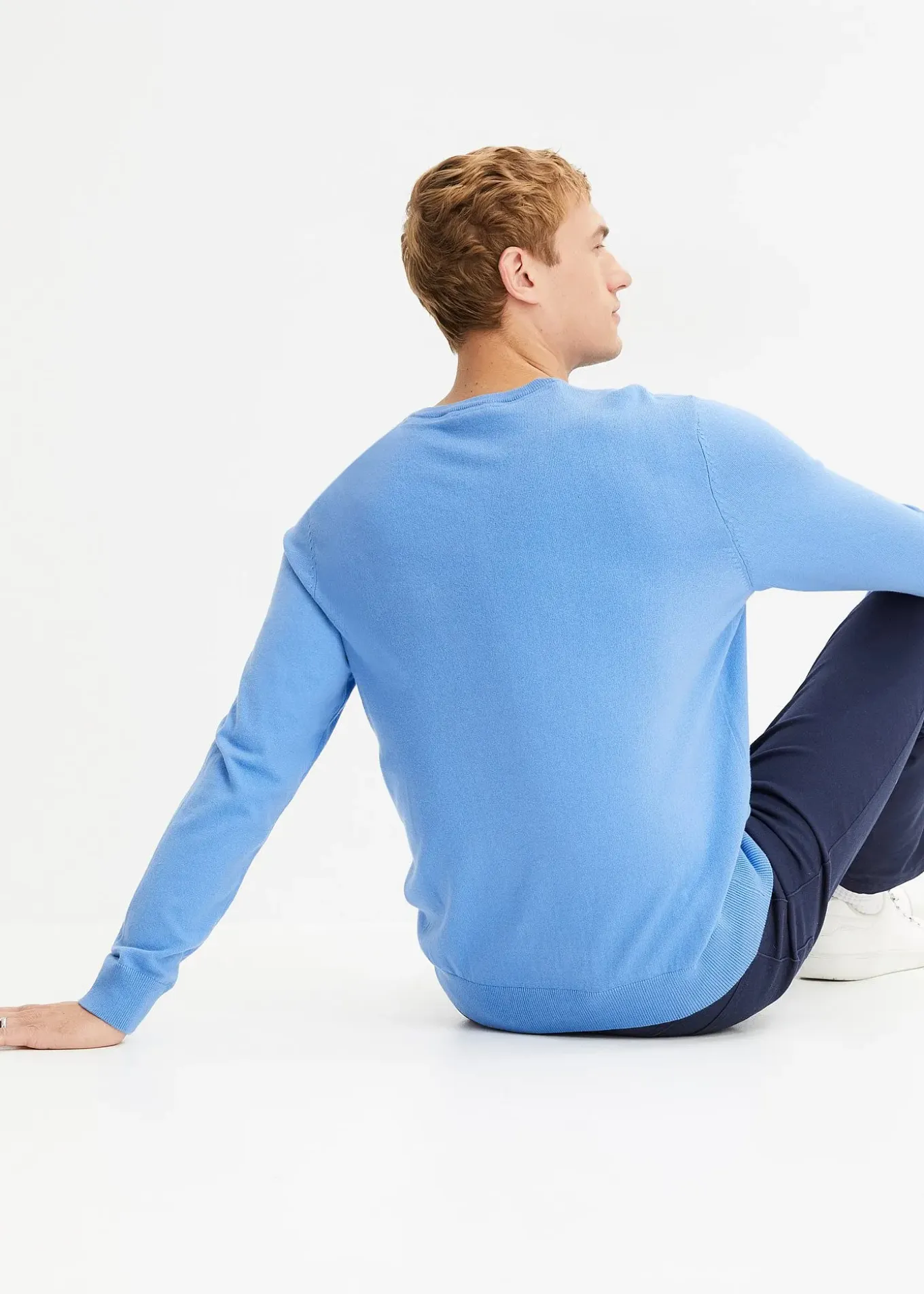 Pull homme classique en fine maille de coton majoritaire avec col en V et finitions côtelées