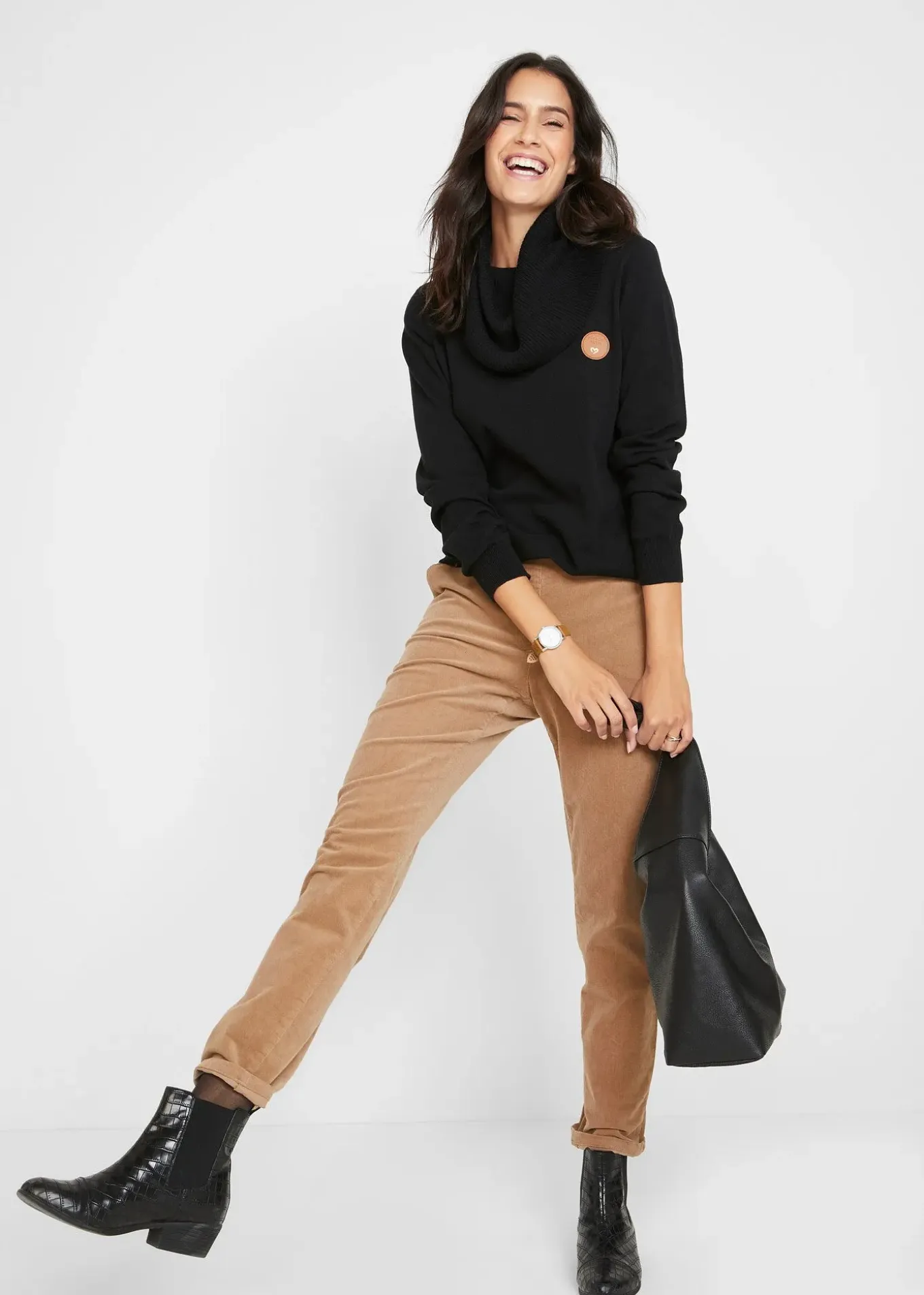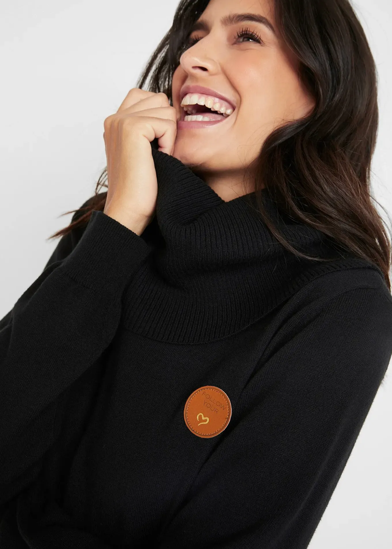 Pull confortable à col boule avec détails en cuir