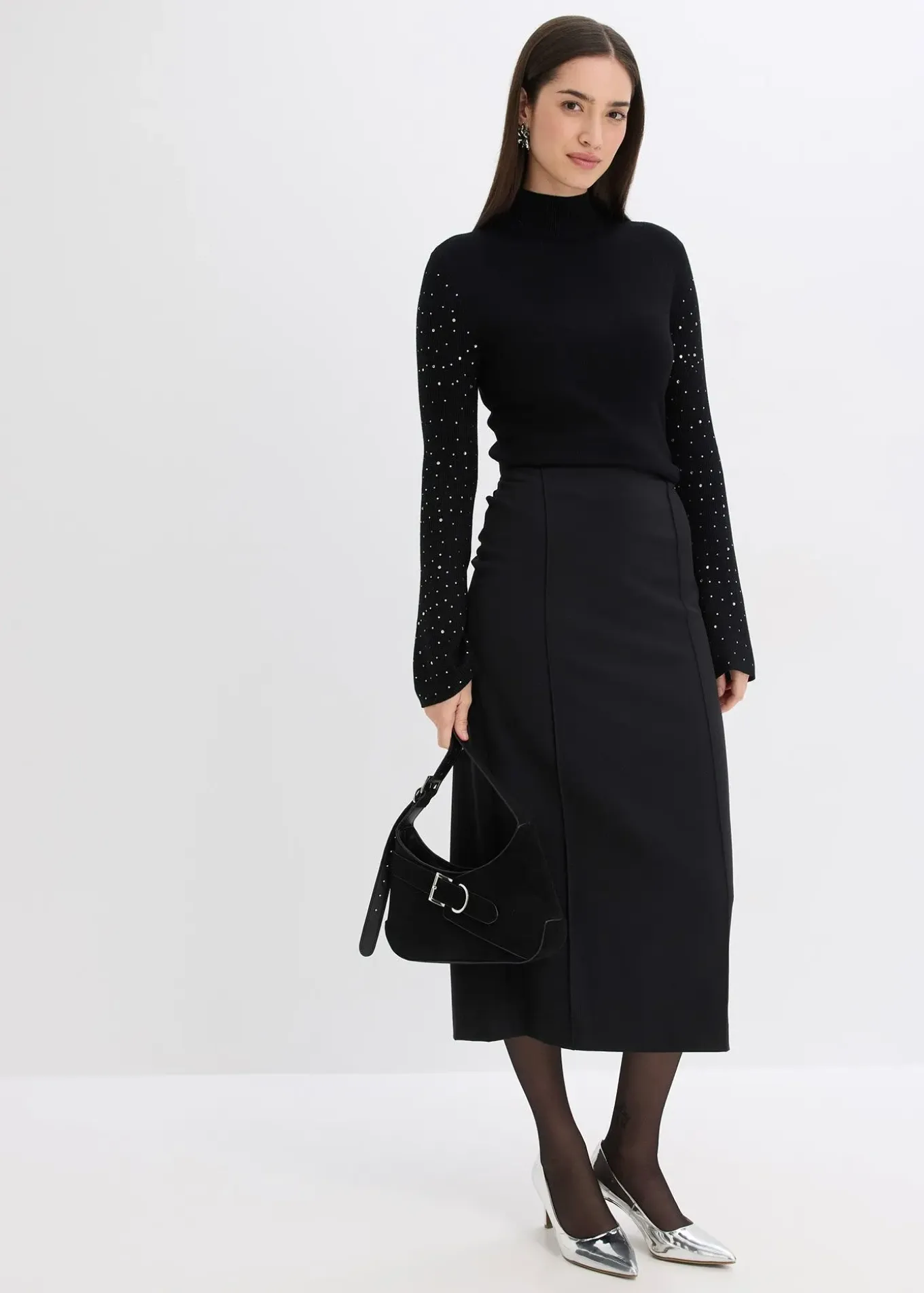 Pull féminin à manches trompette décorées de strass
