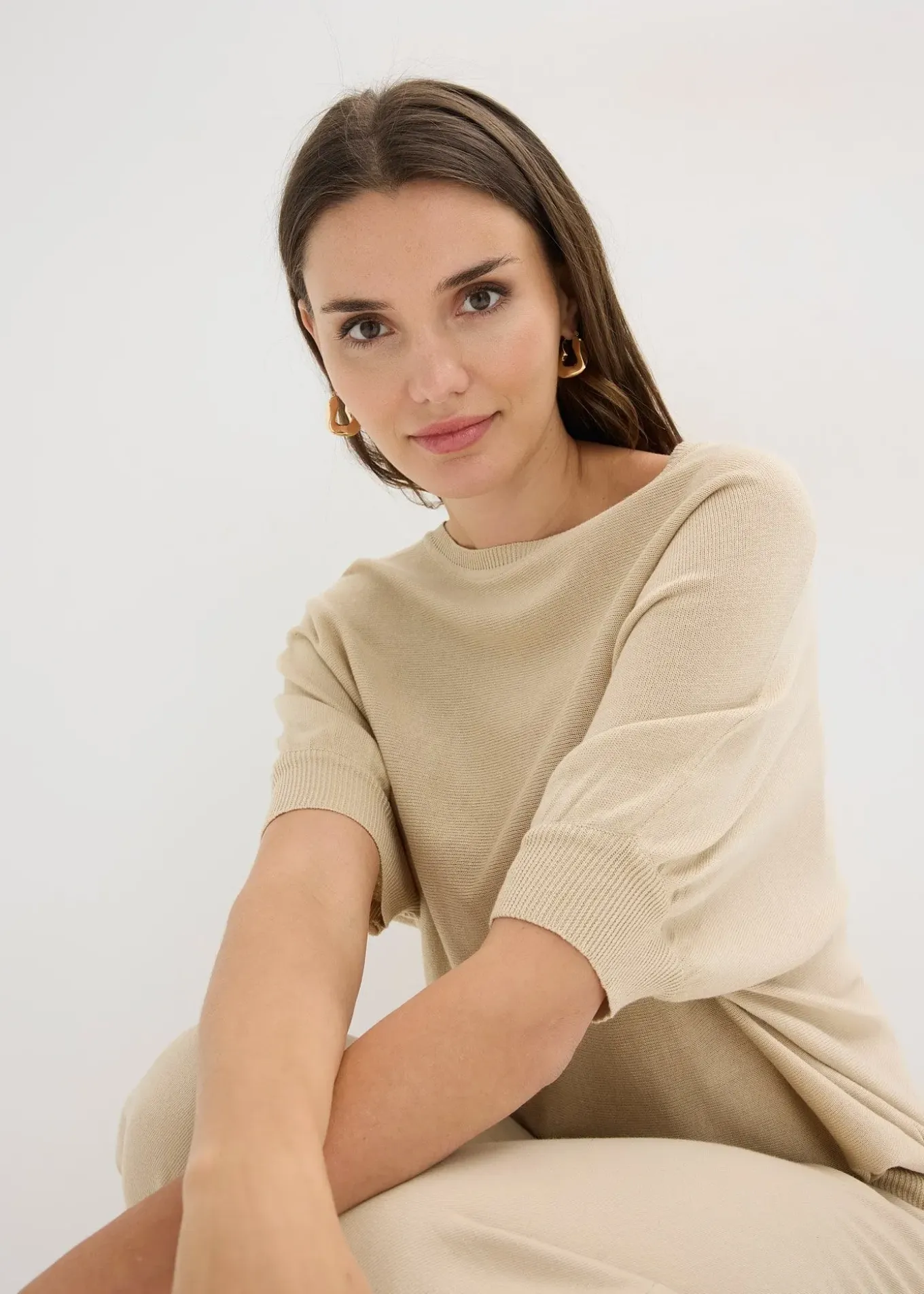Pull à col rond et manches courtes chauve-souris