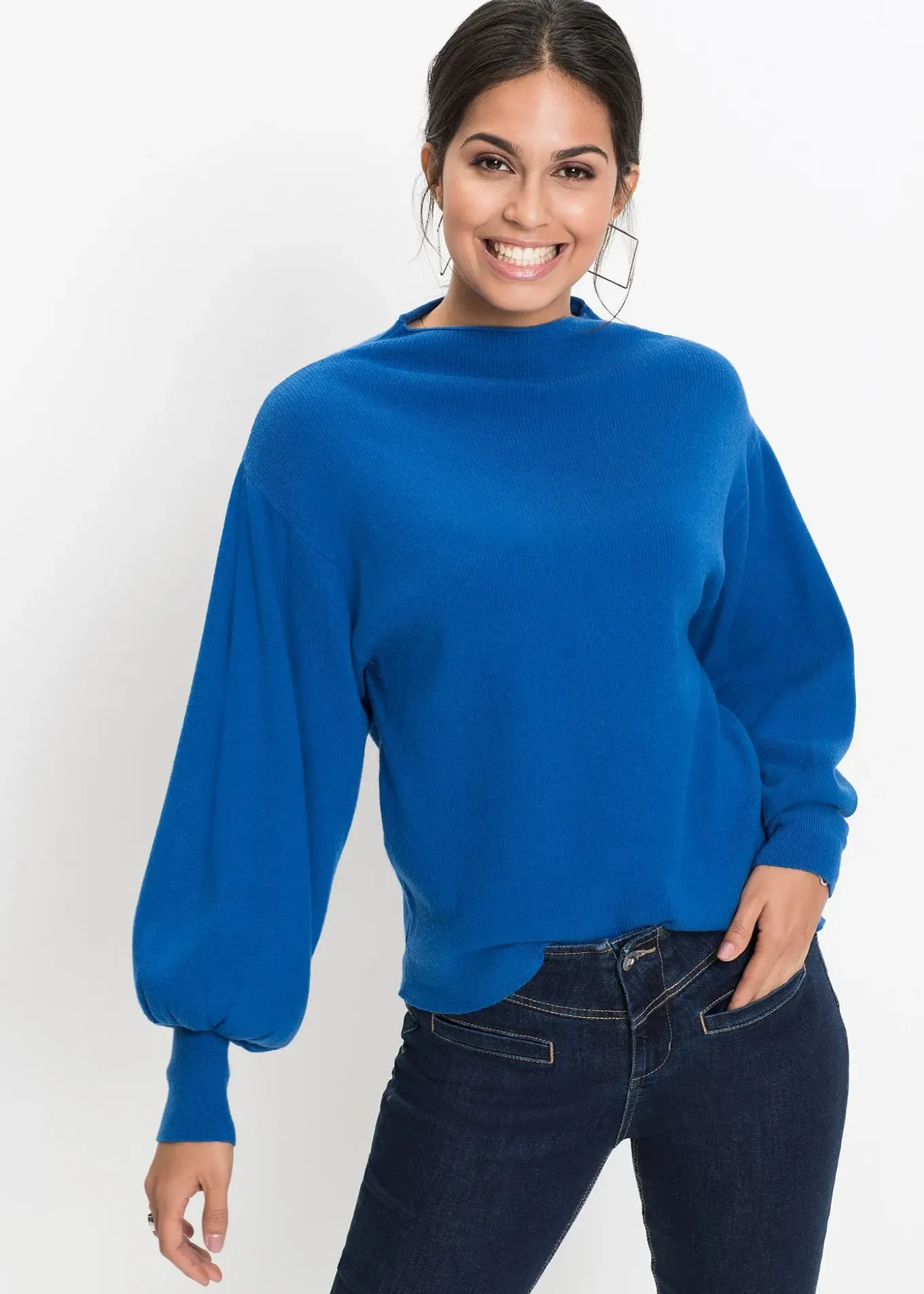 Magnifique pull tout doux à manches ballon. Long. env. 56 cm.