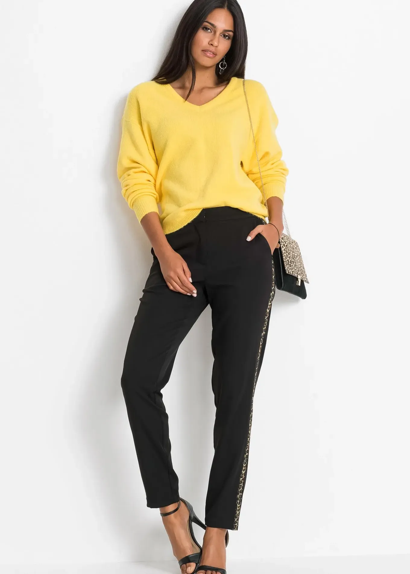 Pull en maille oversize avec manches volumineuses et extra longues. Matière agréablement douce. Finitions côtelées le long de l’encolure en V, à la base et aux poignets.