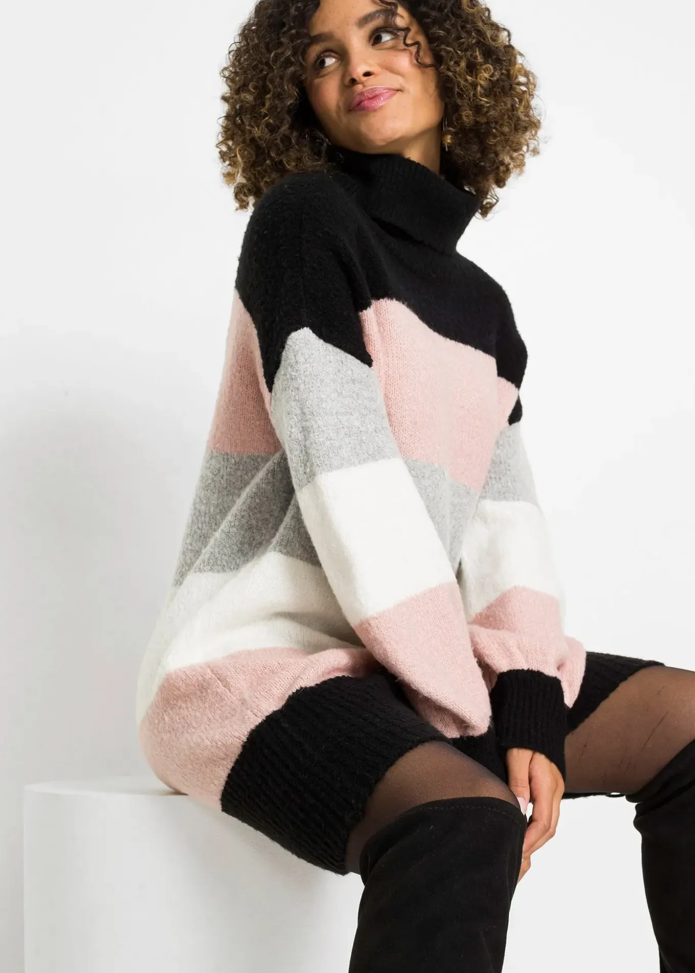 Pull long et douillet avec rayures et col roulé