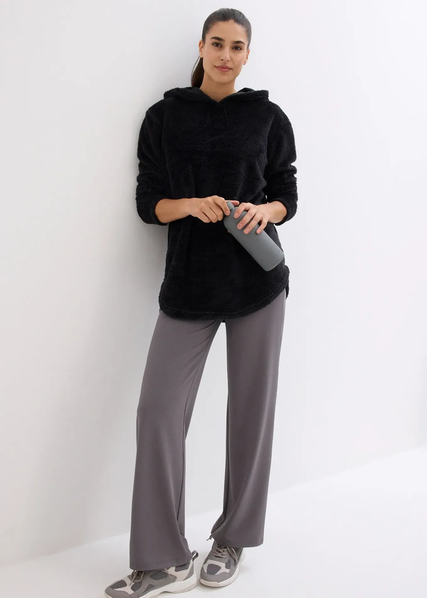 Pull long oversize en polaire peluche, plus long dans le dos